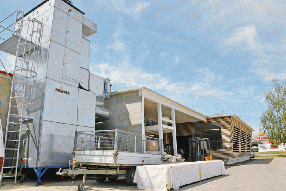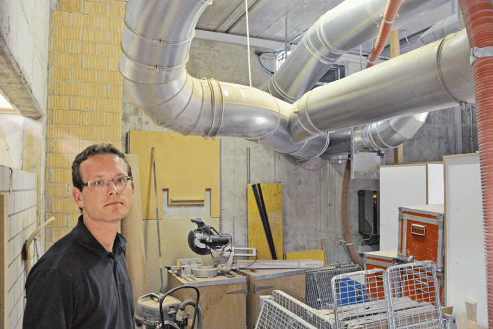 Im Zuge der Vorabklärungen wurde schnell klar, dass die Kapazität der bestehenden Absauganlage für dieses Vorhaben bei Weitem nicht mehr ausreicht. Schon früh zog die Schreinerei deshalb die Ineichen AG für die Beratung hinzu. «Man machte uns darauf aufmerksam, dass die neue Anlage aus Sicherheitsgründen nicht mehr am alten Standort im Keller installiert werden kann», erklärt Lukas Vatter. Die neue Absaugung mit kleinem Spänespeicher musste darum ausserhalb der Werkstatt aufgebaut werden. Zusätzlich wurde sie durch eine Brikettpresse ergänzt. Ebenfalls komplett ersetzt hat man das Rohrleitungsnetz. Dank dem neuen Maschinenlayout reduziert sich dessen Länge wesentlich, was sich positiv auf die Absaugleistung auswirkt und den Installationsaufwand verringert.