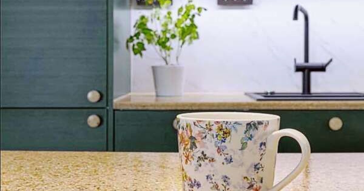 Das «Woodio»-Material ist laut Herstellerangaben der weltweit erste zu 100 % wasserbeständige Massiv-Holzverbundwerkstoff, der als ökologische Alternative zu Keramik- und Steinmaterialien konzipiert worden ist. Die von Woodio Oy entwickelte Material-Innovation ist eine Kombination von Holzspänen mit einem Bindemittel auf Harzbasis. Das Material ist schlagfest und bei normalem Gebrauch nahezu unzerbrechlich. Es wird mit einer schmutzabweisenden Beschichtung versehen, was die Reinigung erleichtert. Die Produkte können mit einem milden Reinigungsmittel gereinigt und einem feuchten, weichen Tuch abgewischt werden. Alle Produkte werden im Werk in Helsinki hergestellt. Die Produktionstechnologie spielt bei der Verkleinerung des CO2-Fussabdruckes eine grosse Rolle. Sie ist so konzipiert, dass der Herstellungsprozess keine energieaufwendigen Produktionsschritte erfordert. In der Produktion werden vorwiegend erneuerbare Rohmaterialien verwendet: nordisches Espenholz aus der näheren Umgebung sowie Nebenströme der finnischen Forstindustrie.