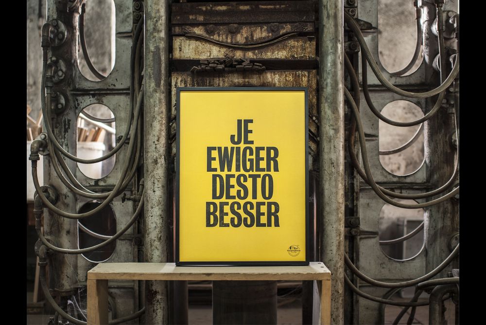 Die typografischen Poster passen zu der Produktion und zu den Produkten der Manufaktur. Bild: Horgenglarus