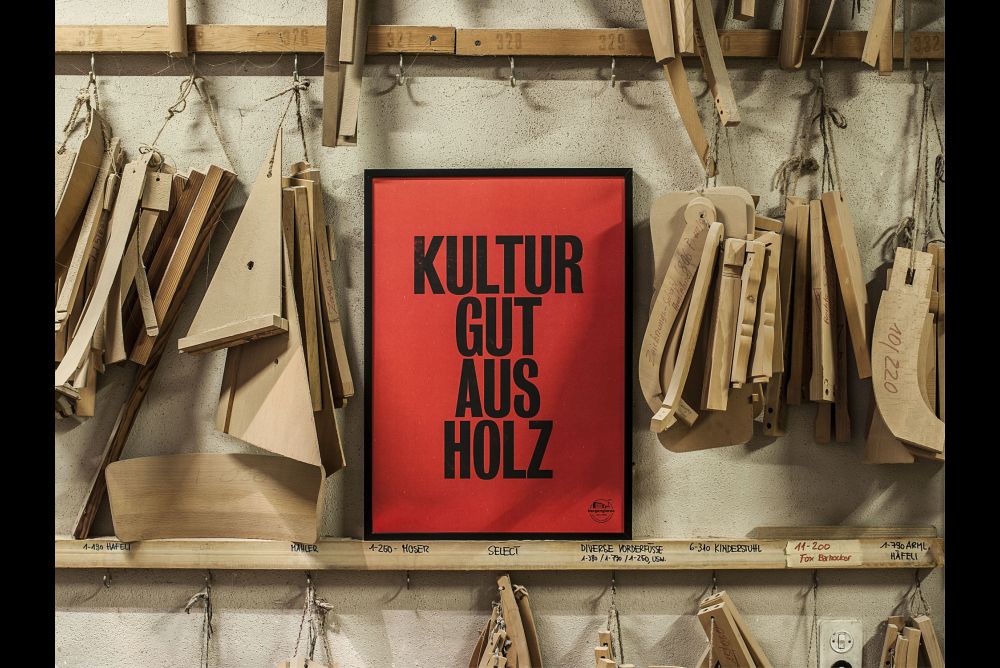 «Kulturgut aus Holz», «Am Anfang war der Baum», «Ich bin ein Klassiker», «je ewiger desto besser» und «Tischodrnung». Diese Sprüche zieren die fünf typografischen Poster, die Horgenglarus neu in ihrem Showroom anbieten.