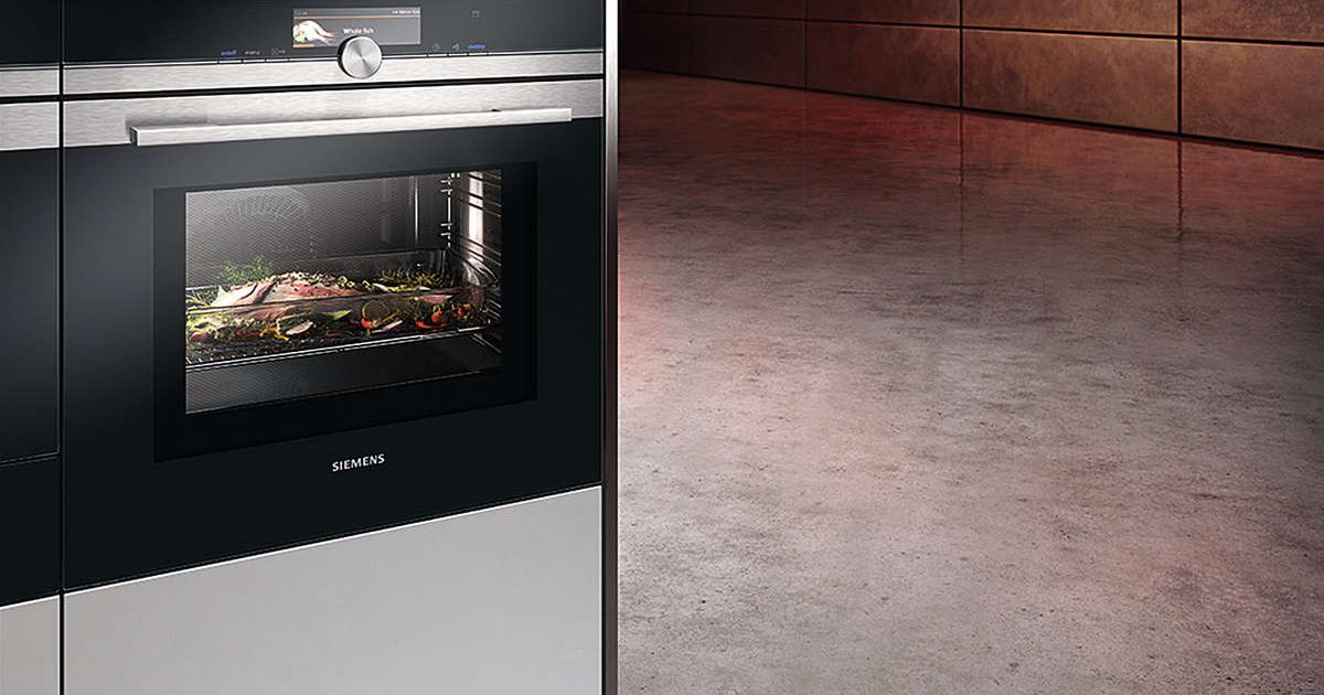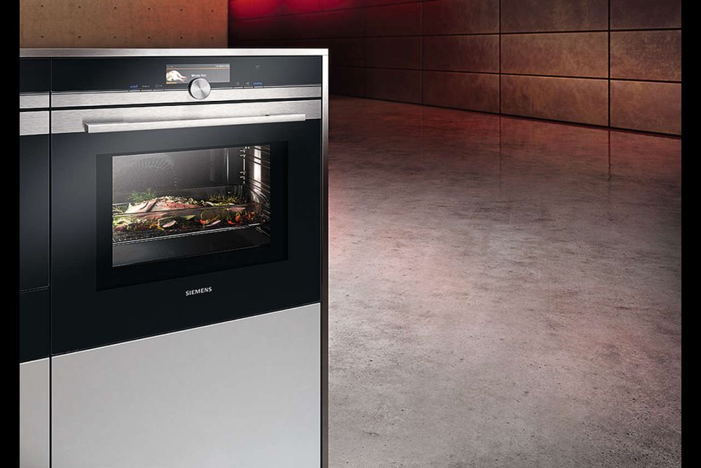 Das Modell «iQ700» ist der erste vernetzungsfähige Backofen von Siemens und passt sich mit seiner streng waagerechten Ausrichtung optisch gut ein. Laut Hersteller vereint erstmals ein Backofen Mikrowelle und Dampfstossfunktion. Funktionen wie «coolStart» und «varioSpeed» verkürzen zudem die Zubereitungszeiten um bis zu 50 Prozent. «coolStart» reduziert die Zubereitungsdauer flacher Convenience-Produkte, «varioSpeed» beschleunigt dagegen die Zubereitung konventioneller Gerichte. So soll eine Lachslasagne schon nach 20 statt bisher rund 40 Minuten servierbereit sein – selbstverständlich bei gleich gutem Ergebnis.