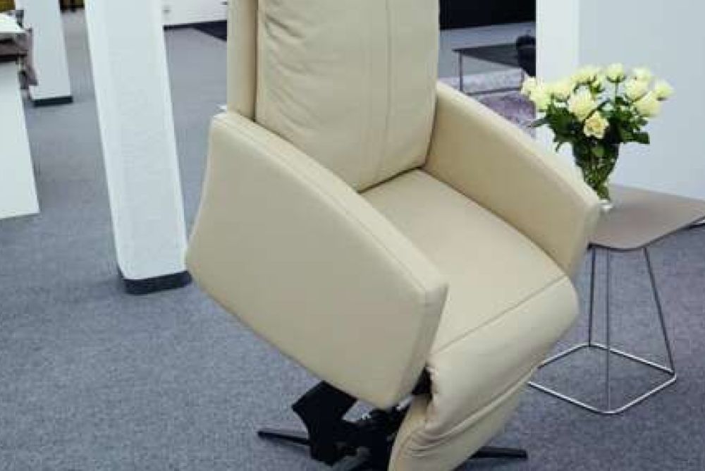 Mit der Aufstehhilfe beim Relax-Sessel Bivio wurde eine Lücke geschlossen, die offenbar einem starken Bedürfnis am Markt entsprach. Bei der Entwicklung galt ein besonderes Augenmerk der optischen Wirkung der Hebekonstruktion, die in der Aufstehposition deutlich sichtbar ist.