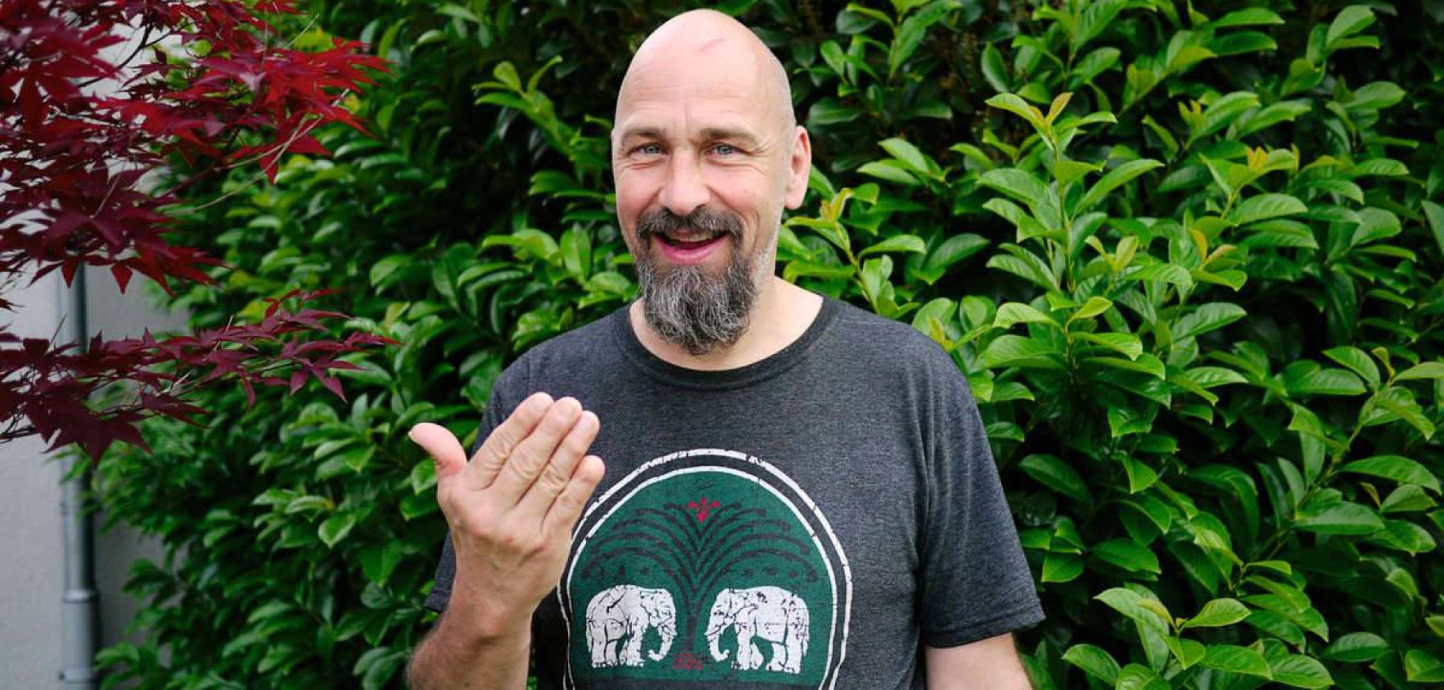 Wenn Jakob Rhyner spricht, wirkt er ausdrucksstark, gewinnend und witzig. Manchmal macht er eine Grimasse, reisst die Augen weit auf oder lacht laut los. Man kann sich gut vorstellen, wie er sein Publikum bei Poetry-Slams zum Nachdenken, Staunen und Lachen bringt. Der 58-Jährige ist ein leidenschaftlicher Slammer und tritt seit zehn Jahren erfolgreich zum sprachlichen Wettkampf an. Selbstverständlich ist das nicht. Denn Rhyner ist gehörlos.