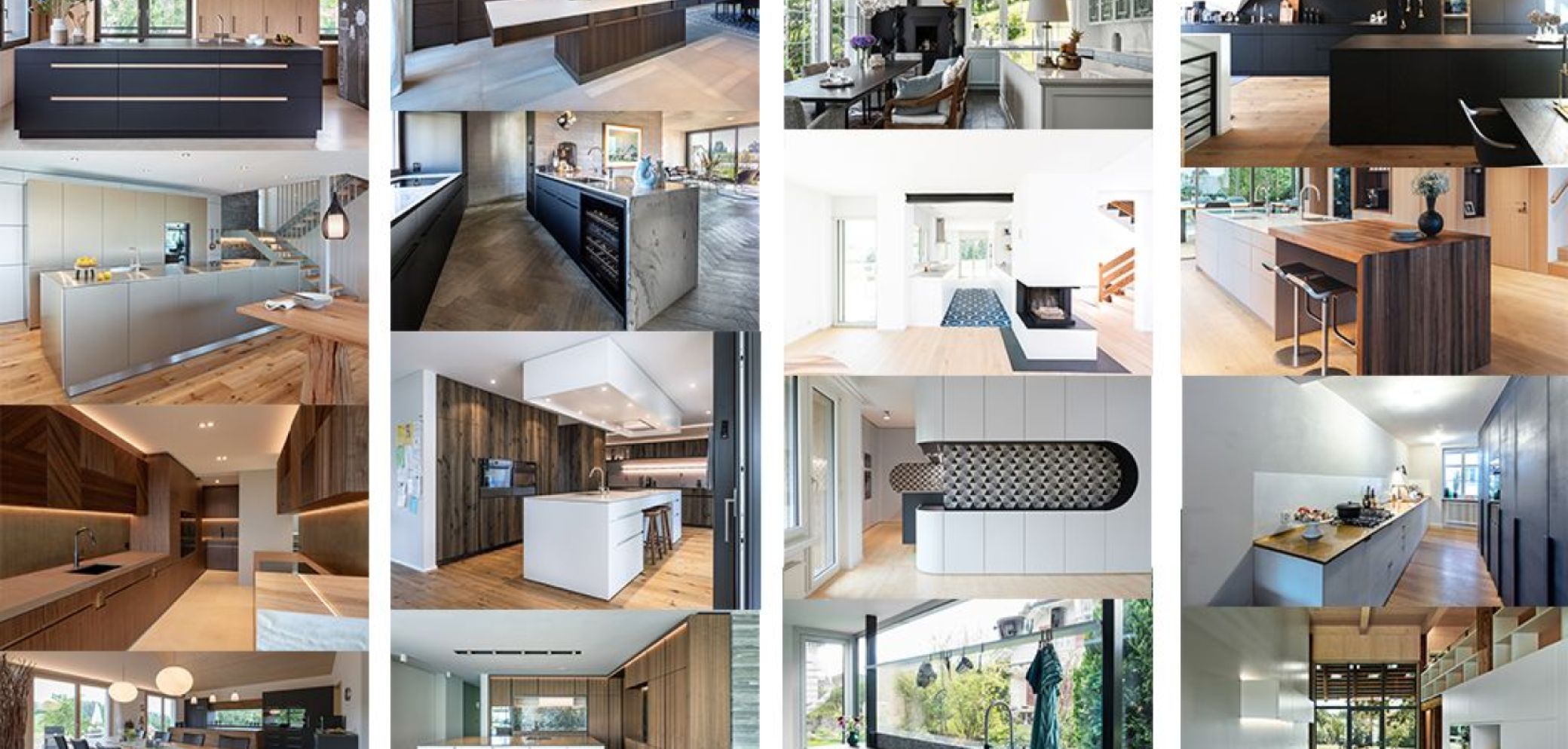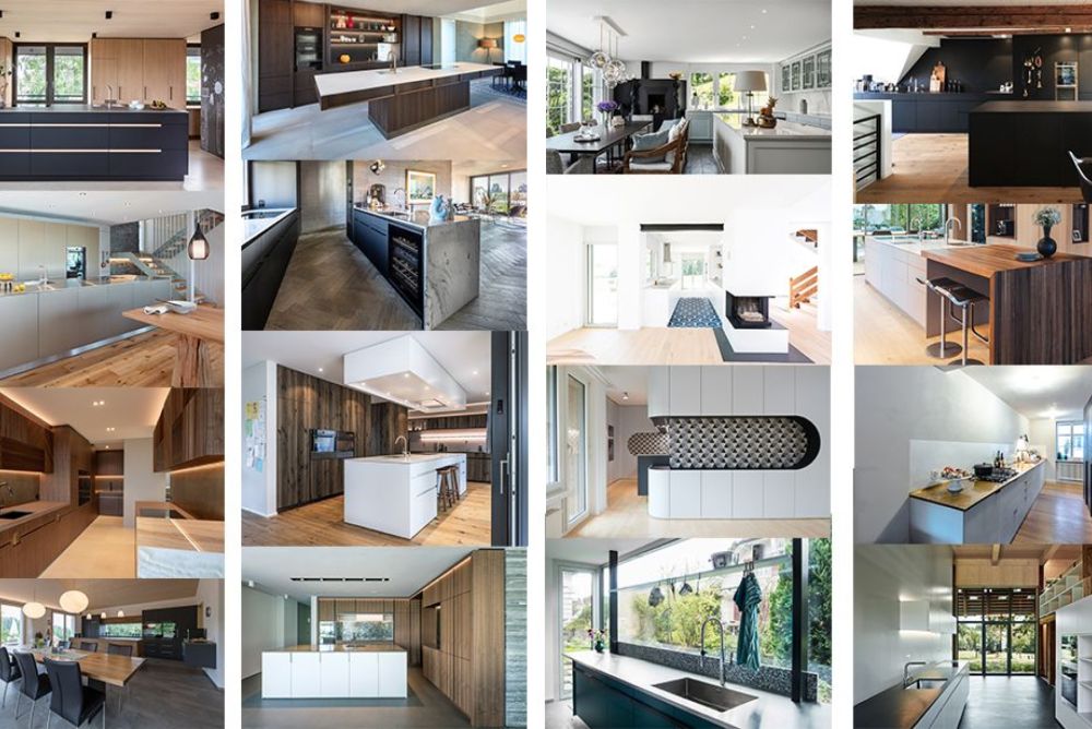 Diese 16 Küchen buhlen um Stimmen im online Voting vom Swiss Kitchen Award. Bilder: Küche Schweiz