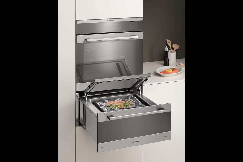 Die verbesserte Funktionalität bei den Geschirrspülern von Gaggenau bringt ausser acht Programmen die grifflose Tür. Wie bei Korpusfronten reicht leichtes Andrücken zum Öffnen. Die Auszüge der Körbe sind zudem mit einem Selbsteinzug ausgestattet, womit dieser Schubladenkomfort auch den Weg in die Geräte gefunden hat. Im Herbst bringt der Hersteller den selbstreinigenden Dampfbackofen mit Direktwasseranschluss und Sous-Vide-Programm. In diesem Angebot dabei wird eine Vakuumierschublade für die Sous-Vide-Gerichte sein.
