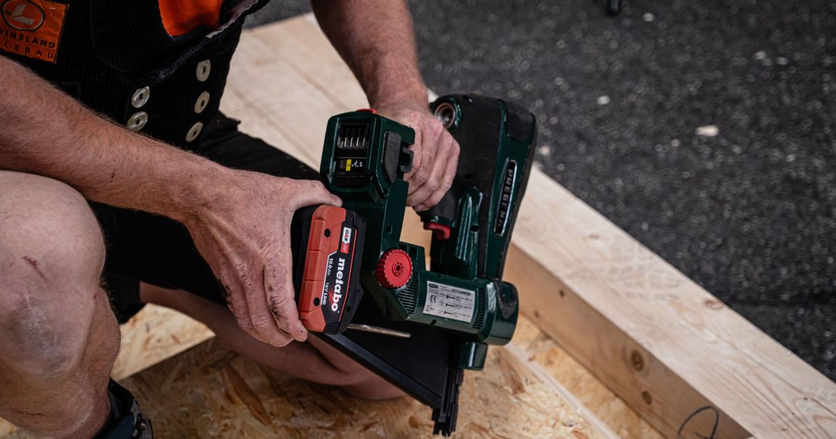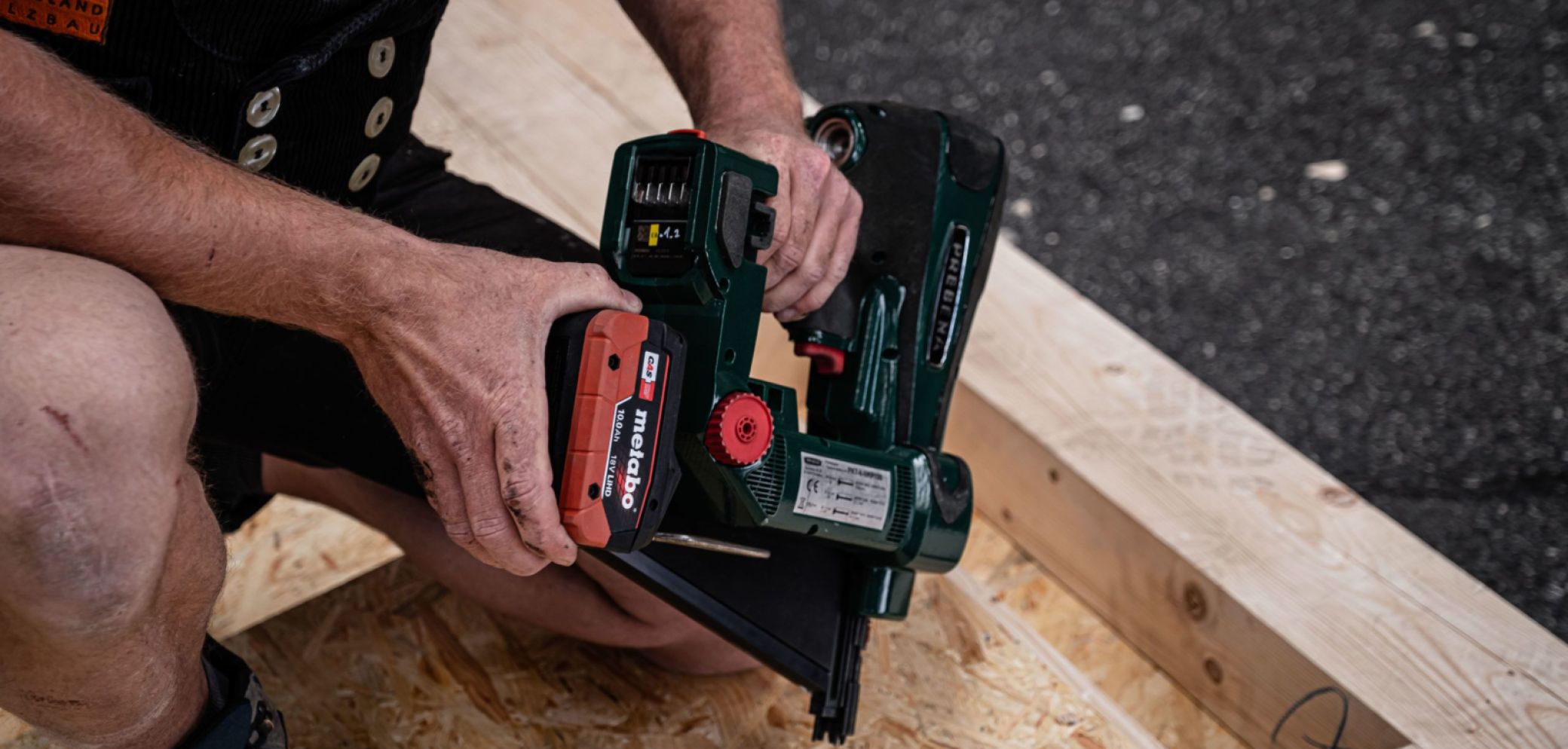 Metabo-Akku mit einem Nagler der Firma Prebena – mit CAS ist das möglich. Bild: Metabo