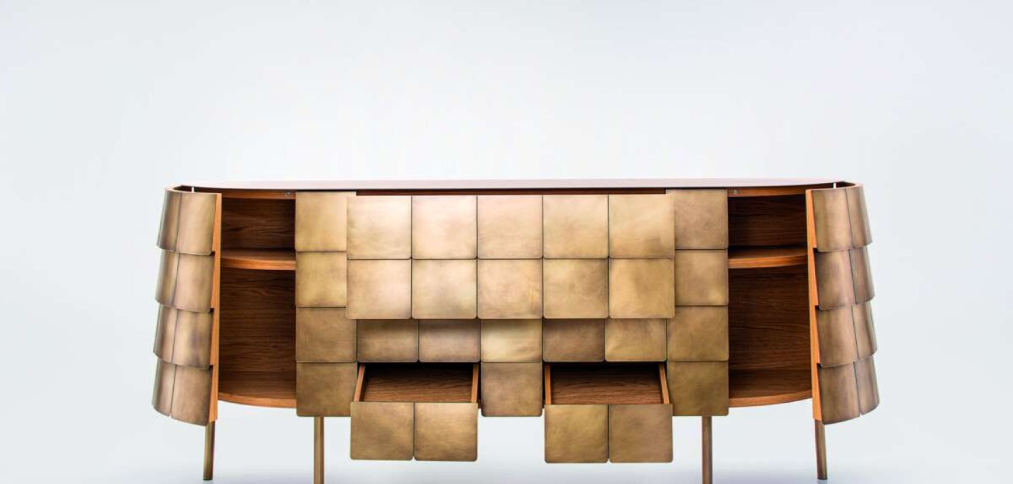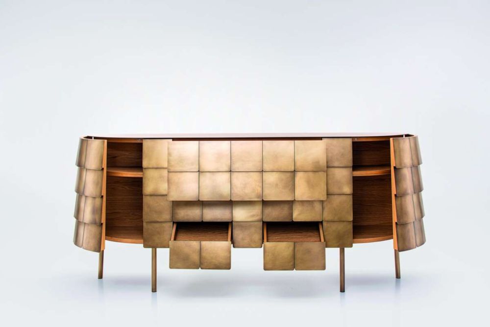 Bei «Yoroi» (2016) vom italienischen Möbelhersteller De Castelli geht Holz mit Metallen eine stabile Verbindung ein. In diesem Fall mit Messing. Bild: De Castelli