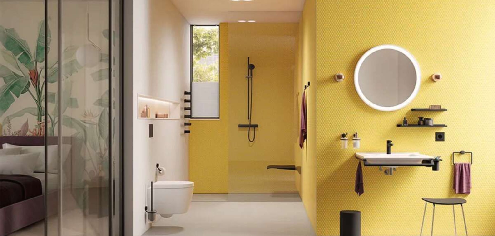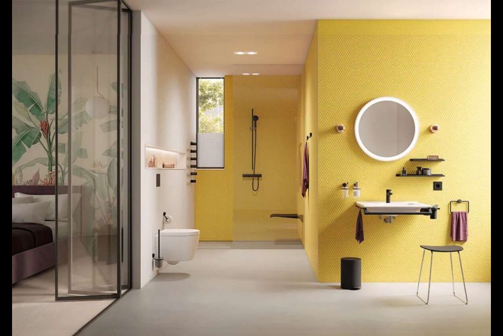 Mit der filigranen Erscheinung der Designlinie 15 von Hewi lässt sich dem Bad Leichtigkeit und Stil verleihen. Die bei Hager erhältliche Kollektion setzt mit minimalem Materialeinsatz und geometrischen Grundformen schlichte Akzente im Bad. Das Sanitärsystem ist sowohl in verchromter, hochglänzender Ausführung als auch mit mattschwarzer Oberfläche erhältlich. Die Einsätze, wie beispielsweise Seifenspender oder Becher, bestehen aus satiniertem Kristallglas.
