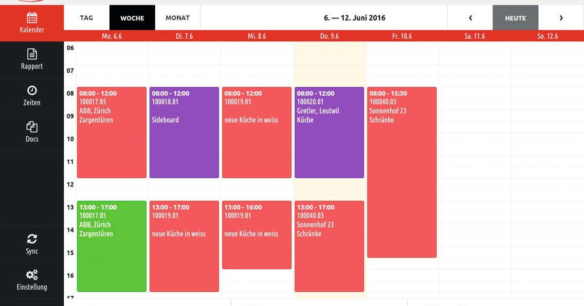 Auf dem Tablet werden die geplanten Aufträge in der Wochenansicht übersichtlich angezeigt.