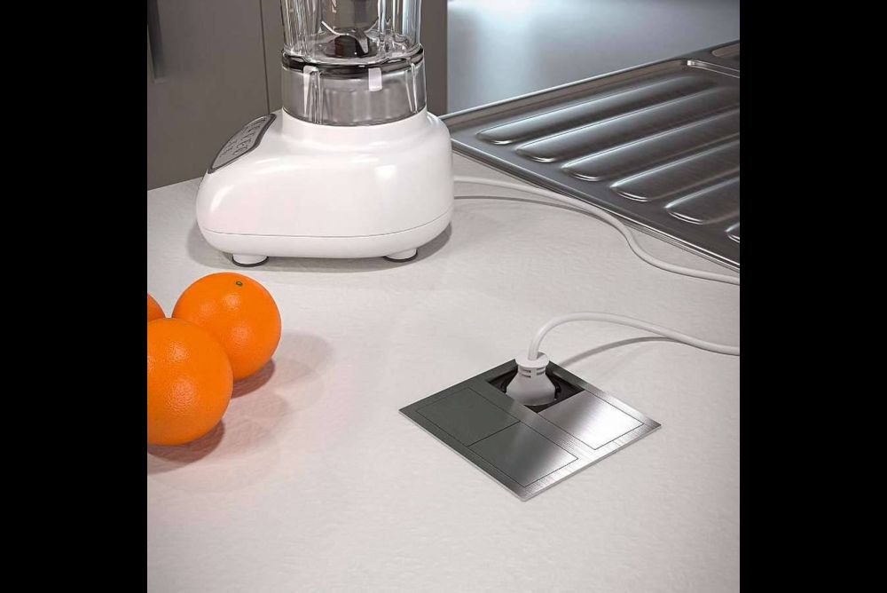 Das mit einer oder zwei unabhängigen Tasten ausgestattete System erlaubt die einzelne oder gleichzeitige Nutzung der Steckdosen. Der Öffnungs- und Schliessmechanismus kann gemäss Hersteller bequem mit nur einem Fingerdruck betä- tigt werden. Dank der Einbautiefe von lediglich 50 mm und der IP44-Schutzart eignet es sich gut für Arbeitsflächen in der Küche. Das System wird in einer doppelten Ausführung mit zweimal Steckdose oder USB-Charger und Steckdose wie auch in einer einfachen Ausführung nur mit USB-Charger angeboten. Ebenfalls sind auf Anfrage weitere Steckdosenarten aus dem Ausland oder den Bereichen Audio, Video und Internet möglich. Erhältlich sind ausserdem besondere Oberflächen wie Gold, Bronze oder Champagnerfarben.
