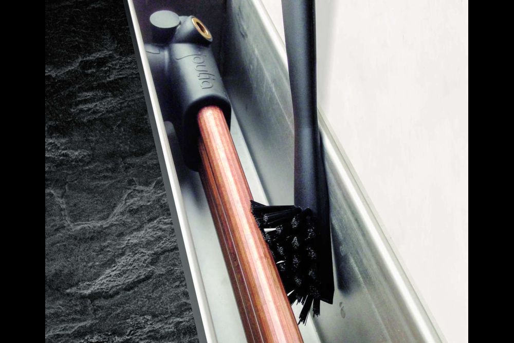 Die Duschrinne ist aus korrosionsbeständigem Material, einfach zu reinigen und dank verschraubter Haltesicherung vandalensicher. «Joulia-Inline» ist die erste Duschrinne mit austauschbarem Rohrwärmetauscher. Einbauen lässt sie sich wand- oder raumseitig.