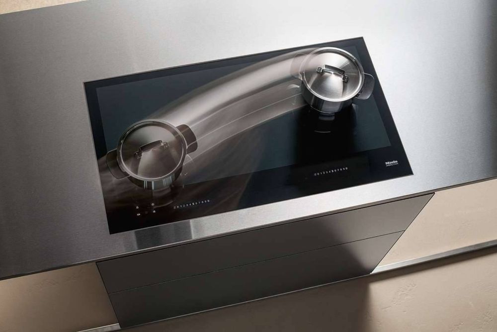 Bei der Vollflächeninduktion von Miele gibt es zudem eine «SmartSelect»-Steuerung, die per Fingertipp auf die Oberfläche erfolgt. Wird ein Kochtopf auf die Glaskeramik gestellt, erscheint am vorderen Rand vor der Pfannenposition eine Zahlenreihe für die Leistungseinstellung. Wenn die Pfanne verschoben wird, wandert diese mit. Verschieben sollte man pro Mal allerdings immer nur ein Geschirr, um die Sensoren nicht zu überfordern. Ebenfalls für Verwirrung können Flüssigkeiten sorgen, welche auf die Fläche gelangen. Sie sollten daher sofort abgewischt werden.
