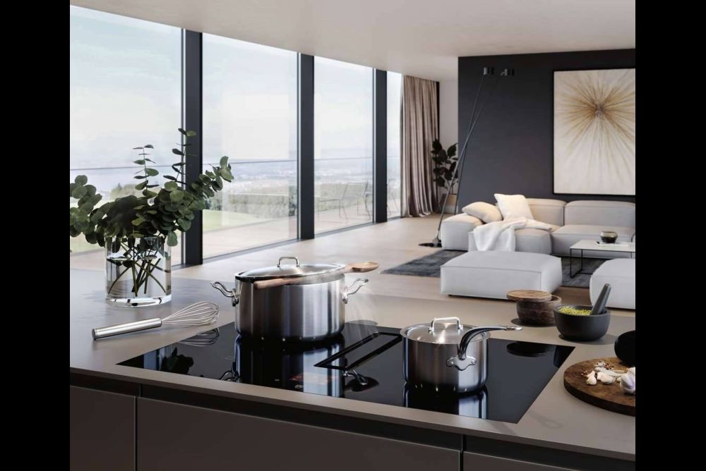 Globales Essen ist in Schweizer Küchen gefragt. Der modulare Aufbau von Kochfeldern kann dabei sehr hilfreich sein. Ein «PowerFlex»-Induktionskochfeld von Miele ist beispielsweise 380 Millimeter breit und hat zwei Kochzonen hintereinander. Fast nahtlos daneben kann ein optisch gleicher Tischlüfter mit 120 Millimeter Breite und dann wieder ein solches Kochfeld platziert werden. Eine Möglichkeit ist aber auch ein Teppan-Yaki-Element mit seiner heissen Edelstahlfläche und zwei einstellbaren Zonen. Auch gibt es einen Barbecue-Grill mit zwei einstellbaren Bereichen oder einen Induktionswok. Zu Letzterem empfiehlt sich die dazu erhältliche Spezialpfanne.