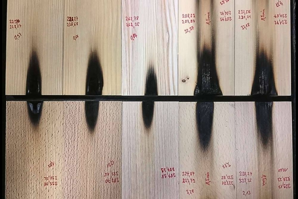 Werden diese mineralisiert, ändert sich das Brandverhalten: Feuer kann sich nur viel langsamer ausbreiten, und es kommt zu einem kürzeren Nachbrennen und einer geringeren Rauchentwicklung, was ein SBI-Test (Single Burning Item) belegt. Positiv ist auch das Verhalten bei UV-Strahlen und betreffend Resistenz gegenüber Pilzen. Durch Auswaschungen wie Regen auf Fassaden kann sich das aber wieder reduzieren. Aktuell geht es um die industrielle Umsetzung und den Sonderfall Eiche. Diese ist sehr gefragt und reagiert wegen ihrer Inhaltsstoffe völlig anders. Weiter werden Fragen wie das maschinelle Bearbeiten, Leimen oder Beschichten noch zu klären sein.