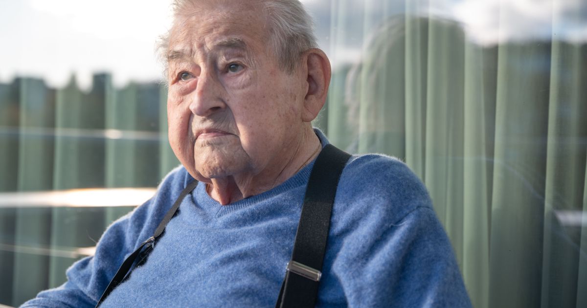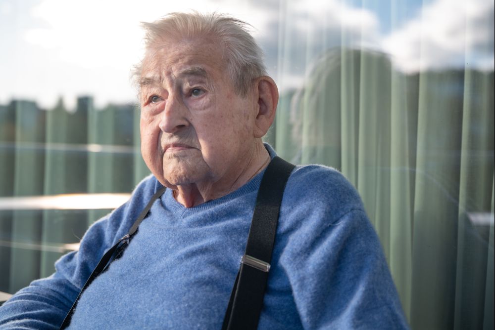 Hans Koller (98) blickt auf seinem Balkon im Betagtenzentrum Staffelnhof auf den Pilatus. Bild: Caroline Mohnke