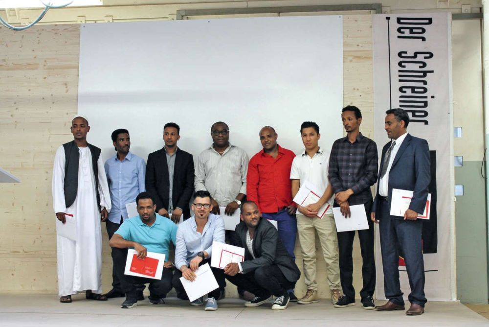 An dieser Feier gab es ausserdem eine Schweizer Premiere. Die landesweit erste Migrantenklasse konnte ihre EBA-Zeugnisse entgegennehmen. Bei diesem Projekt durfte die Technische Fachschule Bern auf die grosse Unterstützung des kantonalen Schreinermeisterverbandes zählen.