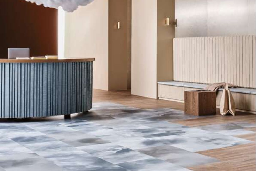 Mit «Allura Flex 1.0» bietet Forbo eine flexible LVT-Lösung, die sich mit einer Haftfixierung einfach verlegen lässt. Der Belag ist für Wohn-, Büro- und Objektbereiche geeignet. Die Flex-Technologie mit Funktionsschichtkonstruktion sorgt für eine hohe Dimensionsstabilität und Strapazierfähigkeit. Die 39 Materialdesigns bieten viel Gestaltungsspielraum. Neben bekannten Beton- und Zementoptiken gibt es auch neue Wolkendesigns. «Allura Flex 1.0» ist in den quadratischen Formaten 500 × 500 Millimeter und 100 × 100 Millimeter erhältlich. Der fünf Millimeter starke Belag hat eine Nutzschicht von einem Millimeter und einen Recyclinganteil von 33 Prozent.
