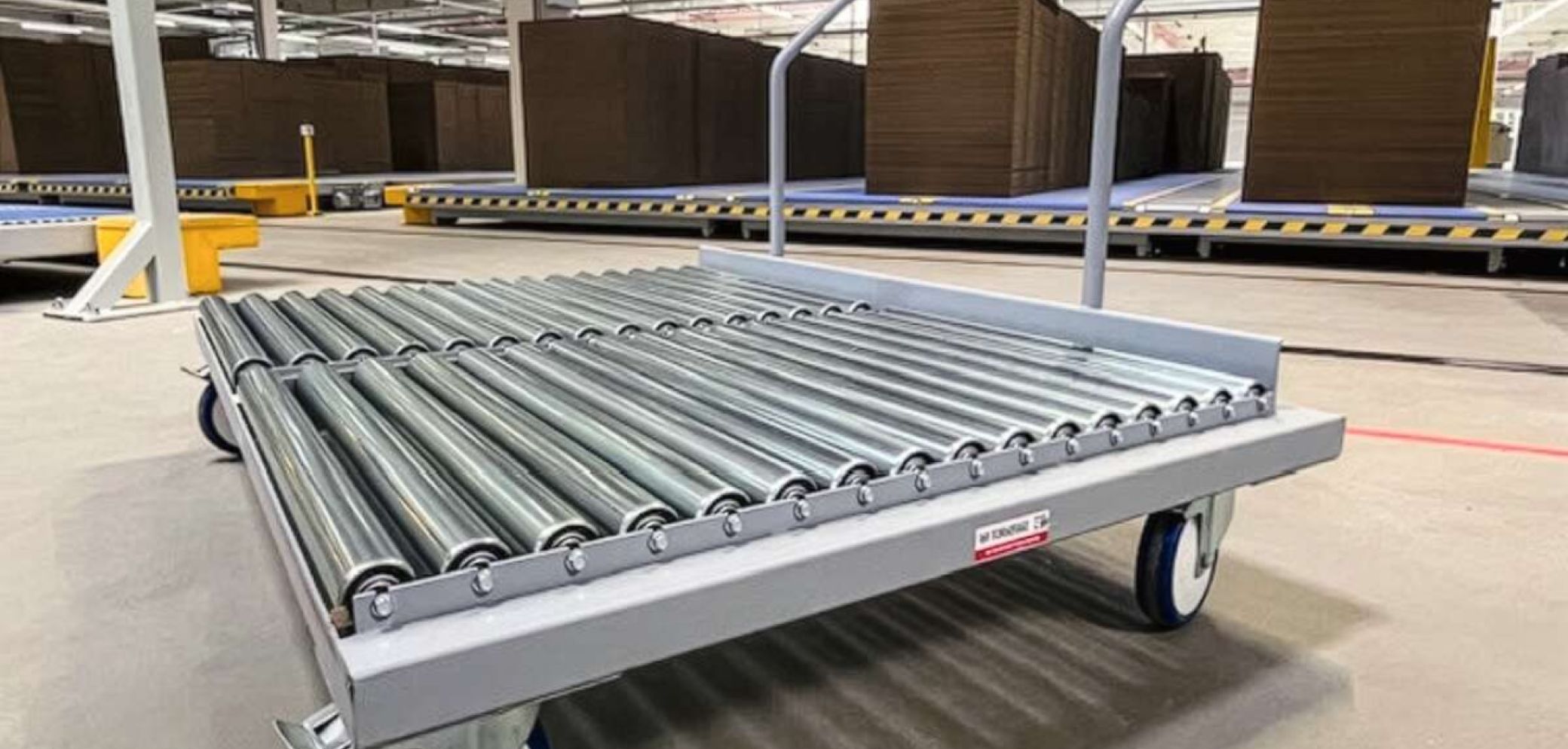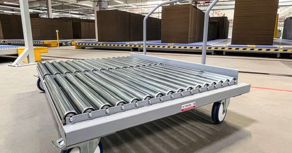 Die Torwegge GmbH hat einen Schiebbügelwagen mit integrierter Rollenbahn entwickelt. Die ergonomische Lösung erleichtert den Transport von Gütern. Mit Massen von insgesamt 1200 × 1800 mm und einer Traglast von bis zu 500 kg eignet sich der Transportwagen beispielsweise für das Handling grosser Stapel. Die integrierte Rollenbahn ermöglicht es, diese direkt vom Förderband aufzunehmen und weiterzutransportieren, ganz ohne manuelle Hebevorgänge. Die zusätzliche Ausstattung wie ein Schiebegriff sowie leichtgängige Lenk- und Blockrollen erleichtert das Manövrieren auch bei voller Beladung. Dank seiner modularen Bauweise lässt sich der Schiebbügelwagen flexibel anpassen, etwa in Bezug auf Masse, Traglast und Ausstattung. Er eignet sich für alle Güter mit einer flachen Auflagefläche.