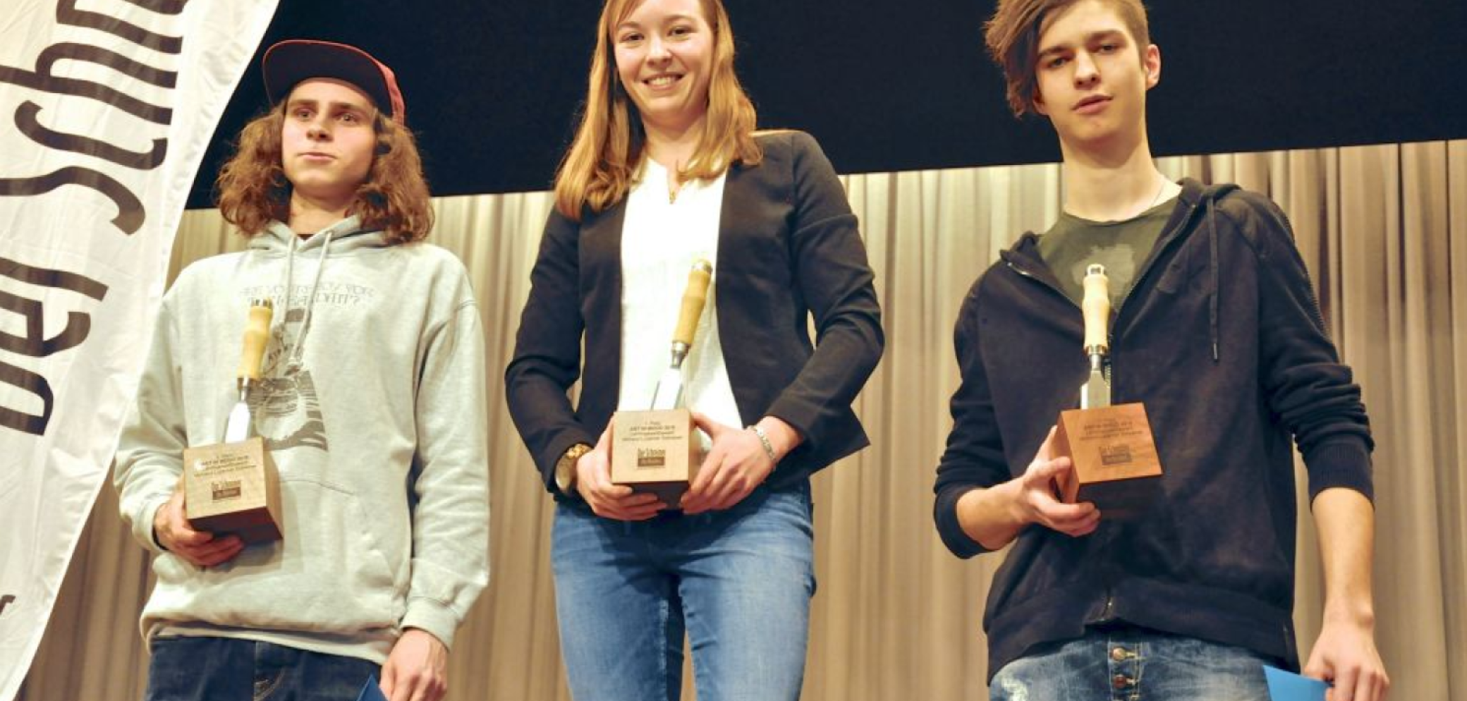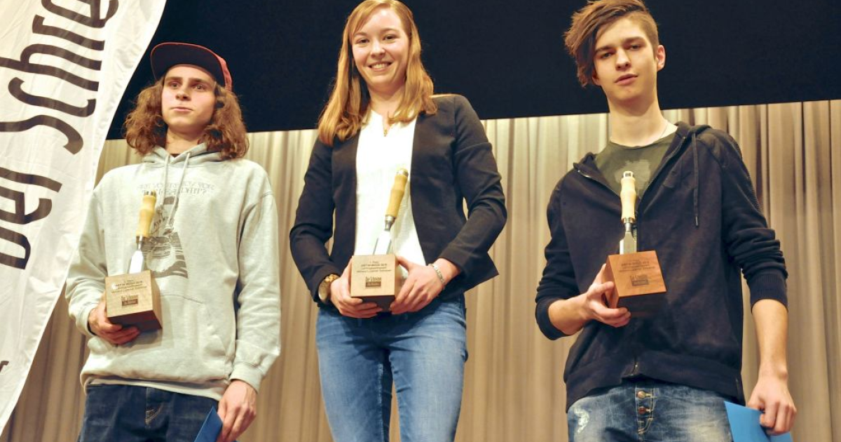 David Steiner, 2. Platz; Selina Stadelmann, 1. Platz; Luca Schöpf, 3. Rang (v.l.n.r.) . Bild: Verband Luzerner Schreiner