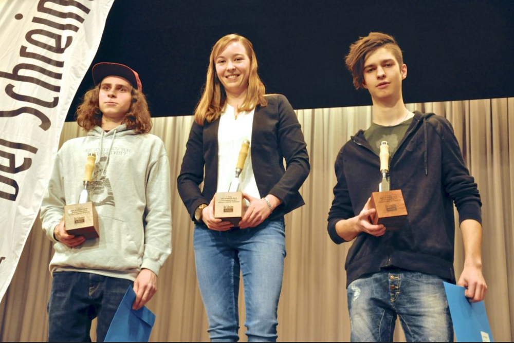 Selina Stadelmann räumte mit ihrem Schreibtisch namens Optimum nicht nur den Fachjurypreis ab, sondern erhält noch zwei weitere Auszeichnungen. Die Fördergruppe «Gestalten und Erfinden» verlieh ihr zudem einen Sonderpreisen für ihre Kreation. Und zu guter Letzt ist Selina in den über 40 Jahren seit der Durchführung des Schreiner-Lehrlingswettbewerbs die erste weibliche Gewinnerin.