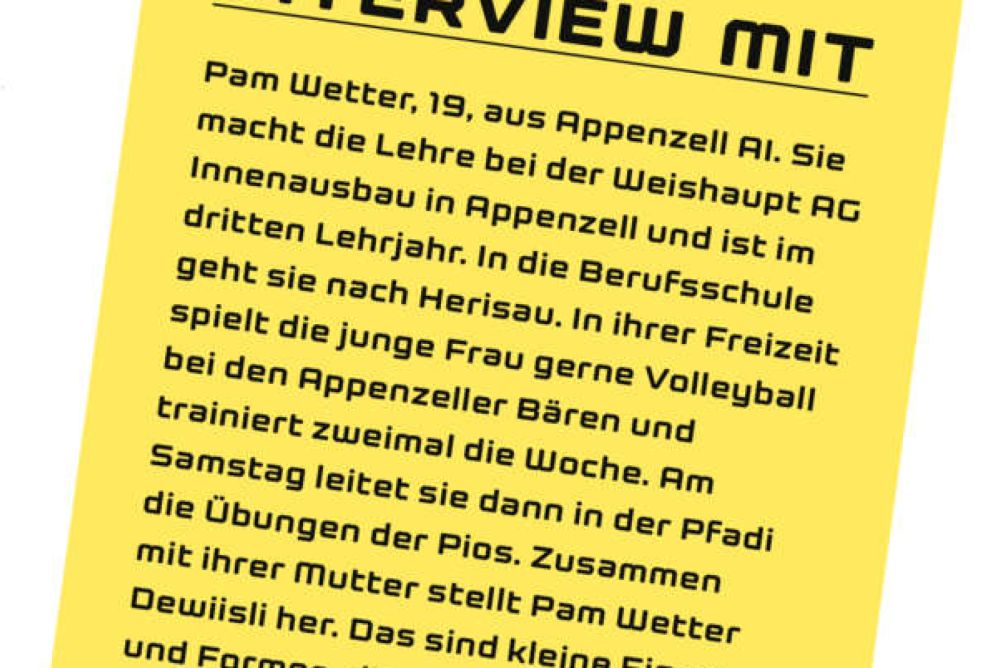 Pam Wetter: Persönlich leider nicht. Die Tischmesse in Appenzell, bei der die verschiedenen Lehrberufe vorgestellt werden, wurde virtuell durchgeführt. Ich durfte dafür Interessenten in Videokonferenzen per Microsoft Teams Auskunft geben. Die Schnupperstifte in meinem Lehrbetrieb konnte ich jedoch mitbetreuen.