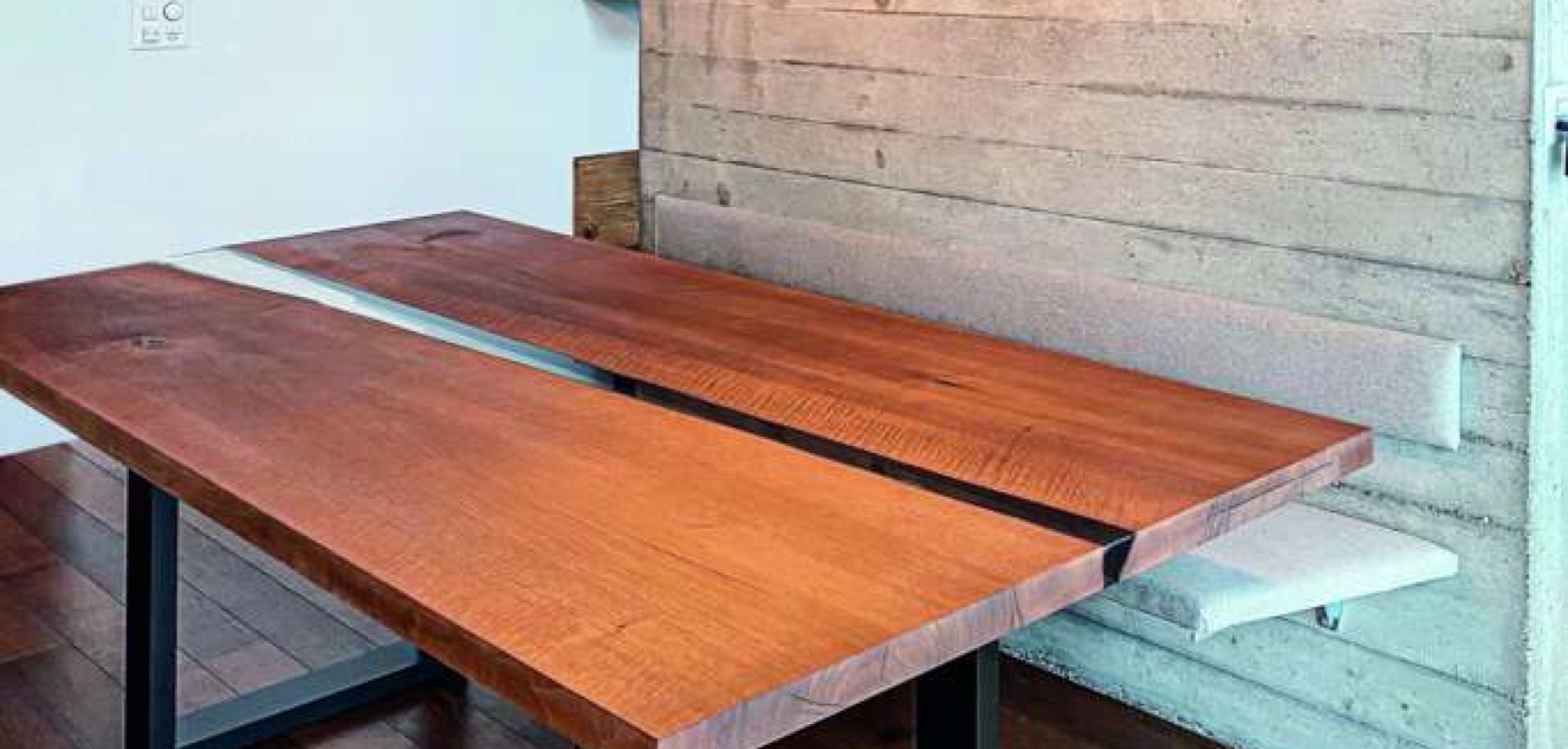 Das Nussbaumholz für den Tisch hat Pam Wetter selbst ausgesucht. Bild: PD