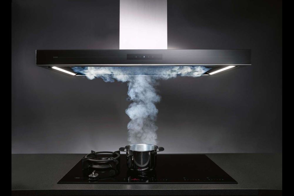 Dass der Dunstabzug mit einer Haube über dem Kochfeld gut funktioniert, ist unbestritten. Neu sind extra-vagante Varianten. Bild: Asko