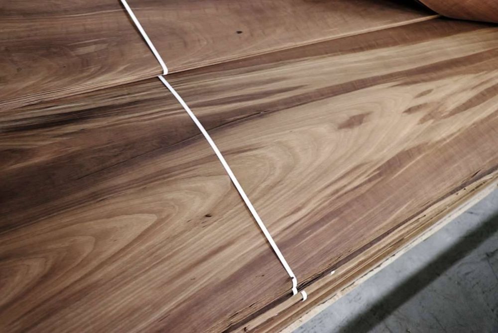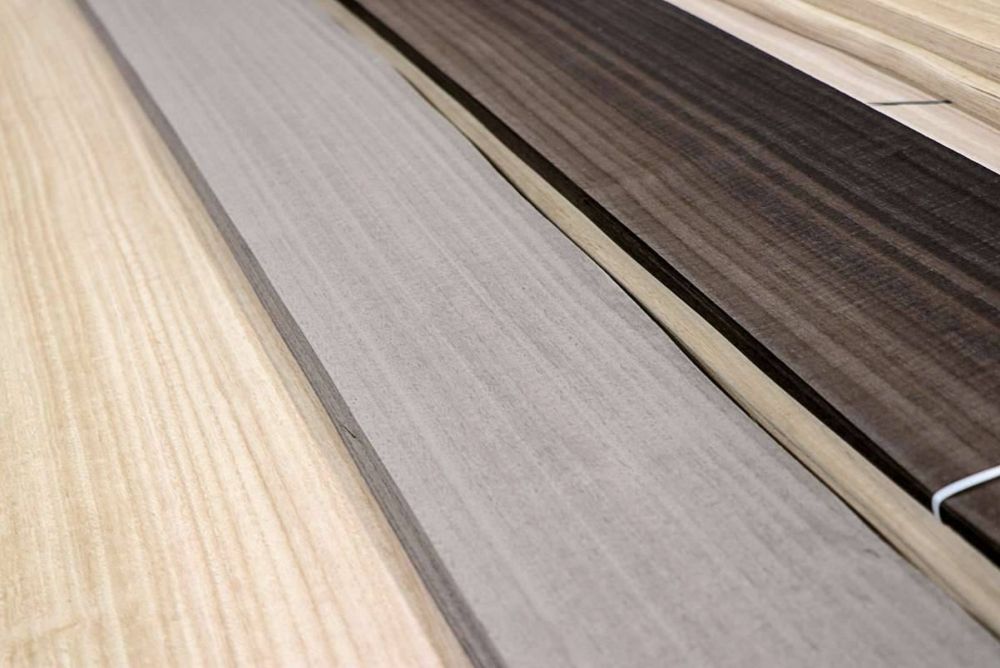 In den Lagern befinden sich unzählige Furniere, und für einige ist die natürliche Modifikation der Schlüssel zum Einsatz. «Der Birnbaum lag für eine lange Zeit bei uns im Lager, erst nachdem wir ihn geräuchert hatten, wurde er wieder gefragter und fand Absatz», sagt Scherg. Ähnlich ging es mit dem Eukalyptus. Als Gegenzug bei furnierten Platten schon länger im Einsatz, wurde die Art durch Modifikation zu einer echten Alternative für Eiche. Weil sich Eukalyptus in Nordspanien und Portugal, wo der Baum nicht heimisch ist, sehr stark ausbreitet, handelt es sich um ein interessantes Holz europäischer Herkunft, das bedenkenlos geschlagen werden kann.