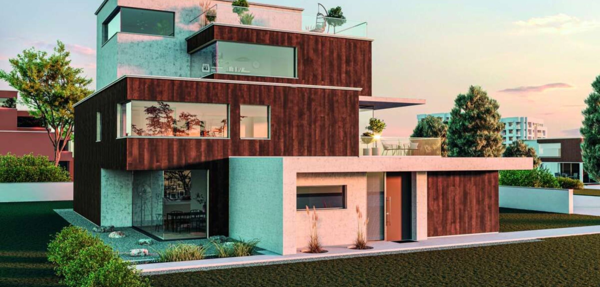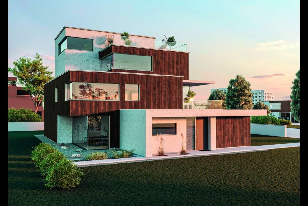 Die Variante «Lignuantix 32» kombiniert zwei aufeinander abgestimmte Farben mit einer gehackten Oberfläche. Das verleiht Fassaden eine lebendige Struktur und ein interessantes Schattenspiel. Zudem entsteht mit den breiten, endlos verlegbaren Profilen eine grossflächige Optik. Zur Wahl stehen die Kombinationen Anthrazitgrau/Basaltgrau, Schokoladenbraun/Maha- gonibraun und Reinweiss/Lichtgrau. Die horizontal endlos verlegbaren Profile werden mit einer dreifachen Farbapplikation und einem Bläueschutz behandelt.