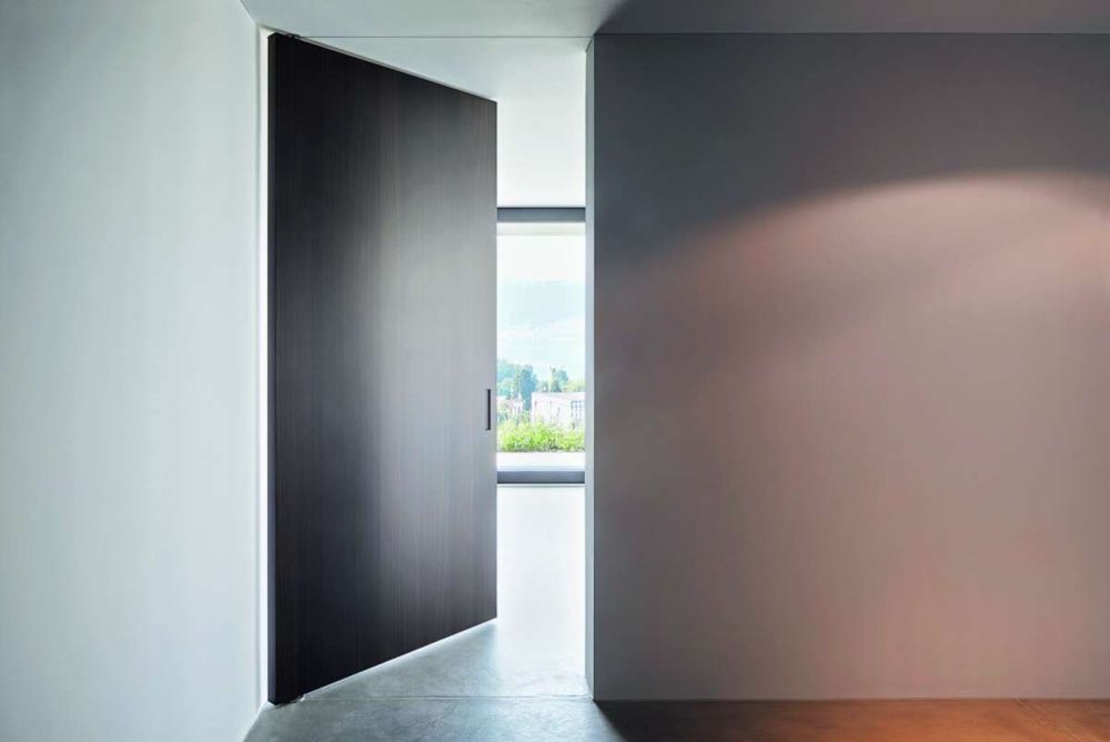 Wie aus dem Nichts tauchen sie auf. Räume, die sich einem erschliessen, nachdem sich die Pivot-Tür geöffnet hat. Vorher war es einfach eine Wand. Ein möglicher Griff? Fehlanzeige. Kein Hinweis darauf, dass es sich um eine Tür, besser gesagt, ein drehbares Panel handelt. Durch die besondere Technik der Beschläge kann ein solches Drehpanel fast jedes Mass und Aussehen haben. Für das Öffnen braucht es keine Kraft. Ein Fingerzeig genügt, um ein mehrere Hundert Kilogramm wiegendes Panel zu öffnen. Das ist die Welt der modernen Pivot-Tür, die nicht nur Architekten anspricht. Wo immer solche Türen in eindrücklichen Formaten gezeigt werden, kommt Begeisterung auf. Ein wenig ist es wie bei der Unterscheidung zwischen Gehen und Schreiten. Es geht nicht um Geschwindigkeit, sondern um ein anderes Gefühl.