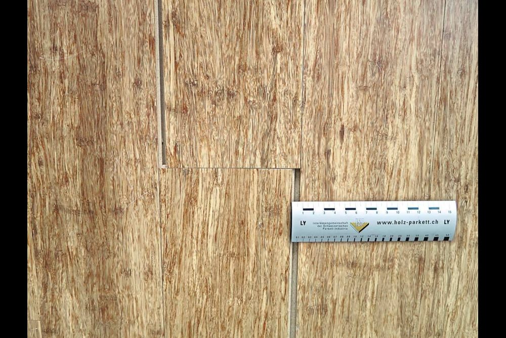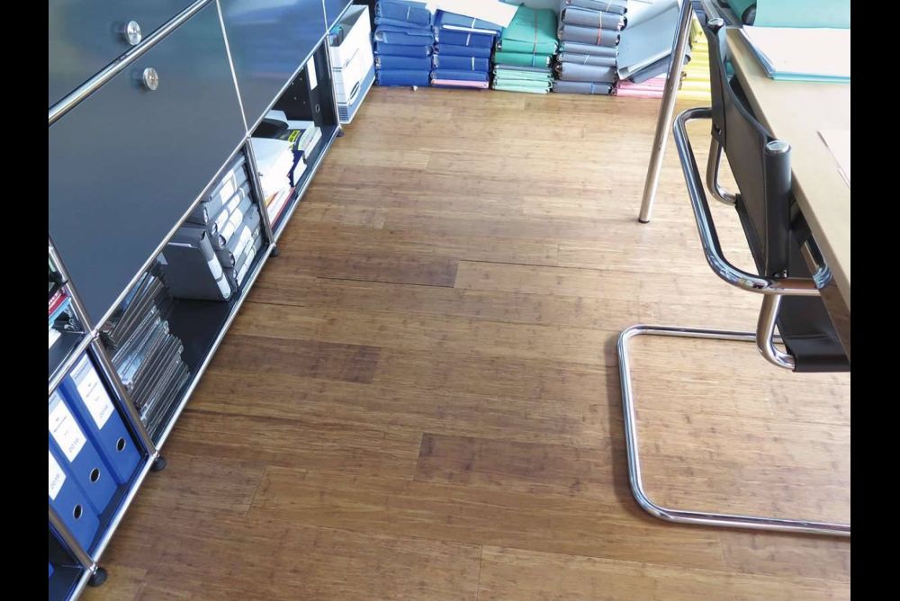 Ein weiterer Schadensfall ereignete sich in einer Anwaltskanzlei. Hier wurde in den Grossraumbüros Bambusparkett schwimmend verlegt. Danach erfolgte den Wänden entlang der Einbau von Aktenschränken. In der Mitte der Räume standen die Schreib- und Besprechungstische. Im ersten Sommer lag das Parkett einwandfrei. Im Winter jedoch resultierten breite, unregelmässig auftretende Fugen, welche irgendwo und ohne erkennbaren Grund in der Fläche auftraten. Die Fugen entstanden sowohl längs wie stirnseitig bei den Riemen.