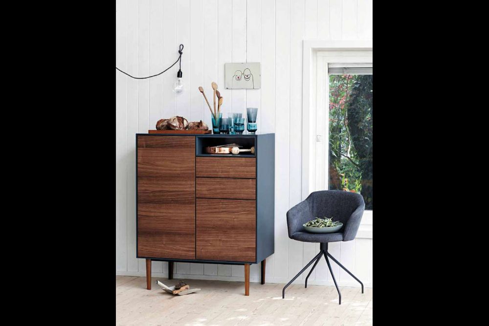 Vielseitig zeigt sich die neue Kollektion von Team by Wellis. Sie wurde von This Weber gestaltet und hat eine klare Linienführung. Die formal reduzierten und feingliedrigen Möbel bauen auf schlanken Untergestellen auf und umfassen unterschiedliche Sideboardtypen, ein grosses Bett, einen Sekretär bis hin zum Stuhl. Das zugrundeliegende System zeigt sich in wiederkehrenden Elementen, die verschiedenste Möglichkeiten bieten und im Kontrast zu den zugehörigen organisch und voluminös gestalteten Polstermöbeln stehen. Die 24 Farbtöne, drei Holzarten und viele Möbelstoffe ermöglichen individuelle Zusammenstellungen.