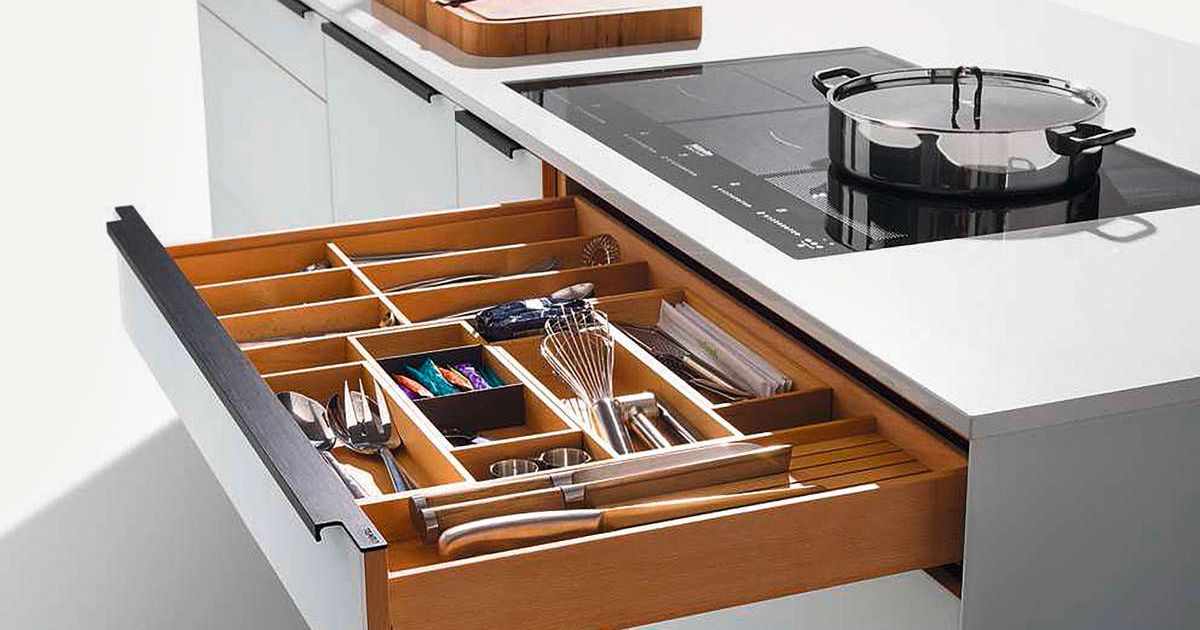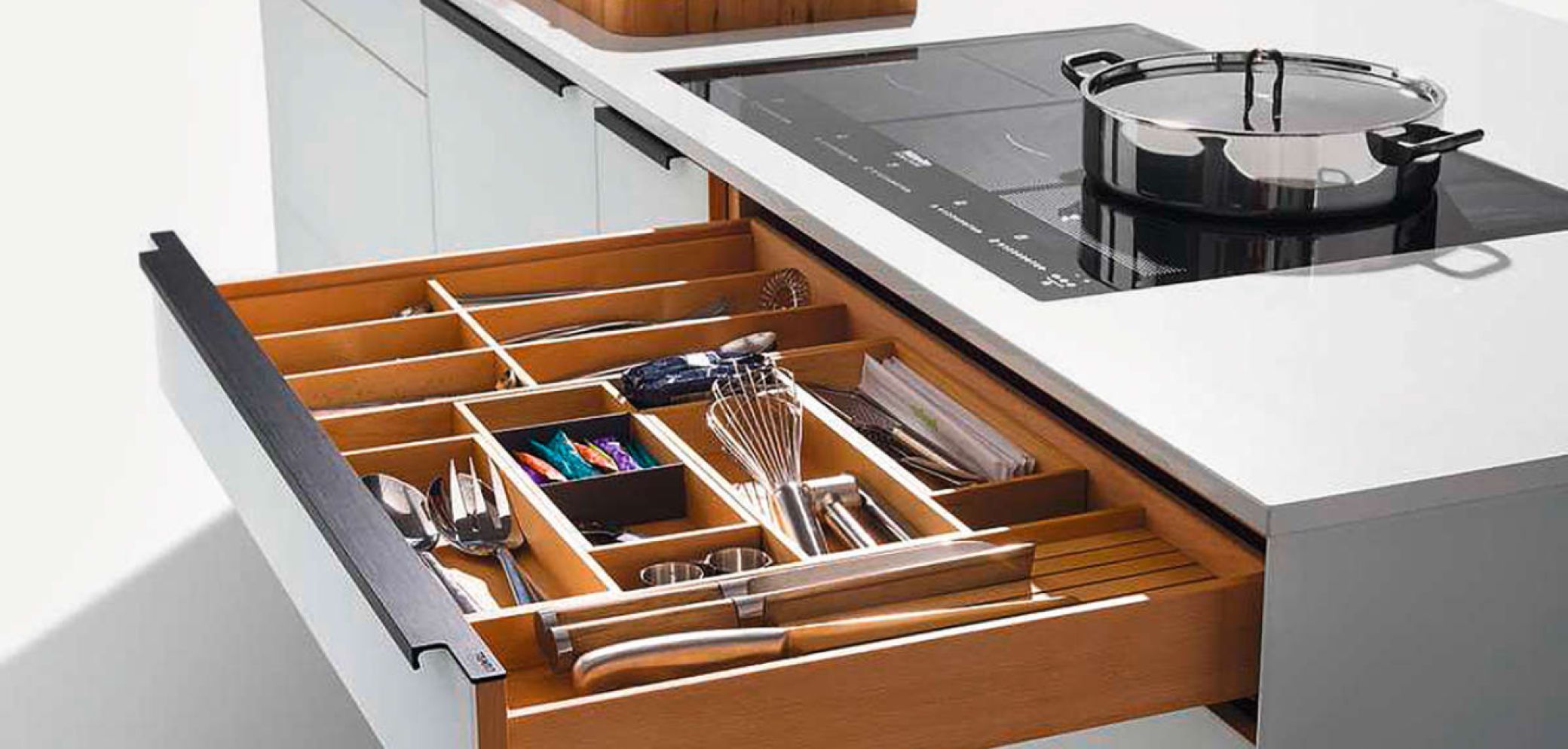 Mit einem aufgesetzten Griffprofil in zwei Farben ergänzt Team 7 das Küchensortiment. Die ergonomische Form gewährleistet ein gutes Handling. In Edelstahloptik oder mattem Schwarz gibt sich dieser Griff von vorne zurückhaltend und geradlinig. Bei geöffneter Schublade ist ein dezentes gelasertes Logo sichtbar. Passend dazu runden neue Sockelblenden in mattem Schwarz das Gesamtbild ab. Alle Korpusse im Küchensystem werden ab sofort komplett in verleimtem Massivholz gefertigt – ohne preisliche Veränderung. Die Fronten werden weiterhin in den bewährten, verzugsfreien Dreischichtplatten ausgeführt.