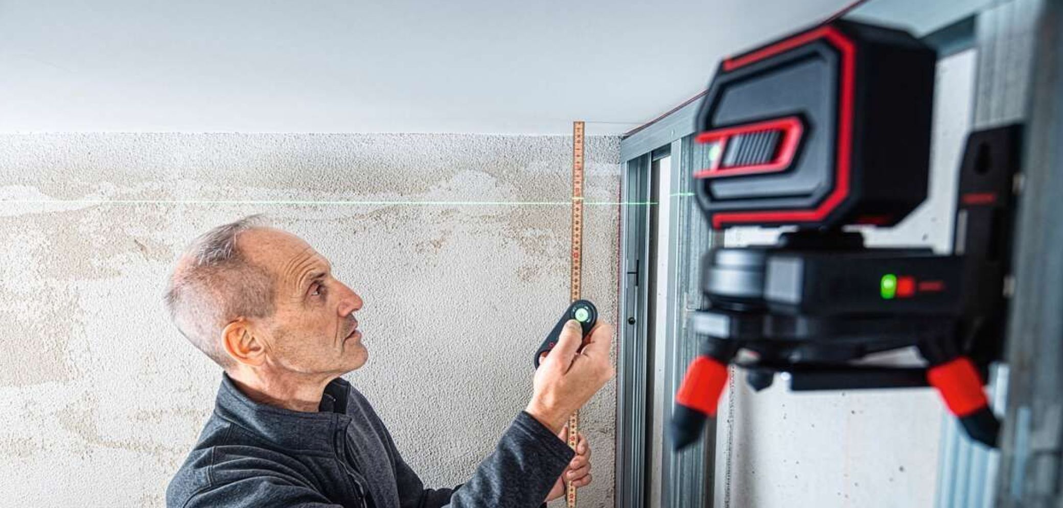 Sola präsentiert mit dem «RCB» eine elektronische Basis für Lasergeräte zur schnellen und präzisen Feinjustierung von Laserlinien. Die Laserbasis wird per Fernbedienung gesteuert. Dadurch lassen sich vertikale und horizontale Laserlinien rasch, exakt und kontaktlos ausrichten. Ein manuelles Nachjustieren direkt am Gerät ist nicht erforderlich. Das spart Zeit, reduziert Laufwege und erleichtert effiziente Arbeitsabläufe auf der Baustelle. Die mitgelieferte Fernbedienung ermöglicht das Ausrichten der Laserlinien aus einer Entfernung von bis zu 30 m. Der «RCB» kann das montierte Lasergerät um 360° im und gegen den Uhrzeigersinn drehen. Die Rotation erfolgt elektronisch, wenn die Fernbedienung verwendet wird. Alternativ lässt sich das Gerät manuell über einen Drehknopf an der Basis steuern. Drei Geschwindigkeitsstufen der Fernbedienung ermöglichen sowohl schnelles Positionieren als auch millimetergenaue Feinjustierung der vertikalen Linien. Horizontale Laserlinien werden über die integrierte Nivellierplattform ausgerichtet. Mit der Fernbedienung lässt sich das Lasergerät millimetergenau um bis zu 20 mm anheben oder absenken. Die Linie kann stufenlos feinjustiert oder direkt auf die maximale Verstellhöhe eingestellt werden. So lassen sich Höhenkorrekturen präzise durchführen, ohne das Gerät selbst berühren zu müssen.