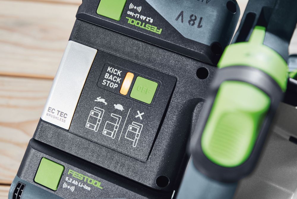 Schluss mit gefährlichen Rückschlägen: Schneller als ein Wimpernschlag stoppt der Motor. Bild: Festool GmbH