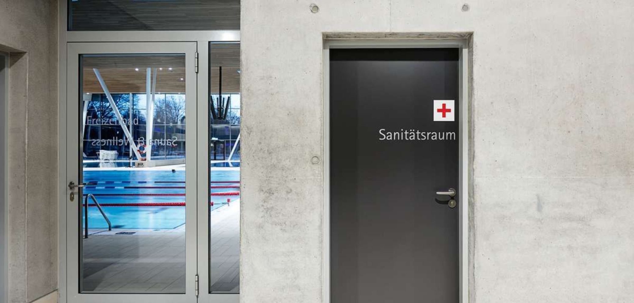 Nassraumtüren haben ausser dem robusten HPL-Schichtstoff verdeckt liegende Kunststoff-Anleimer für eine zusätzliche Absicherung vor Feuchtigkeitseinfluss. Der Anleimer der Unterkante dieser Tür besteht aus massivem, feuchteresistentem PU-Material. Hochwertige Edelstahlbeschläge sind Standard. Beide Türsysteme sind mit Funktionen wie Brand-, Rauch-, Schall- und Einbruchschutz kombinierbar.