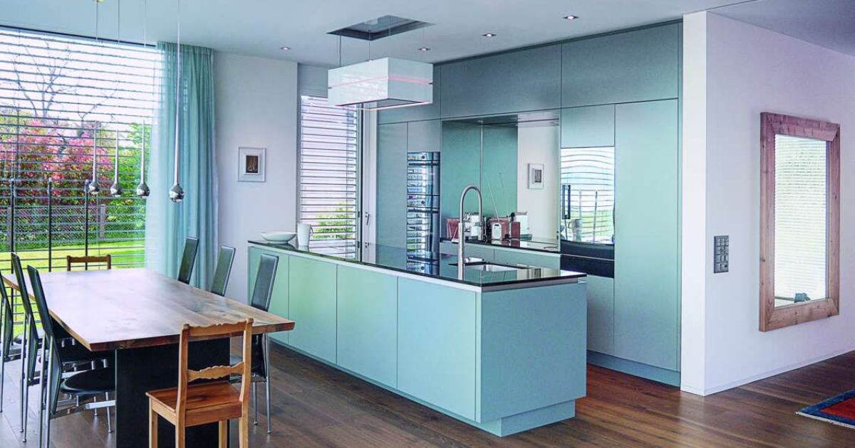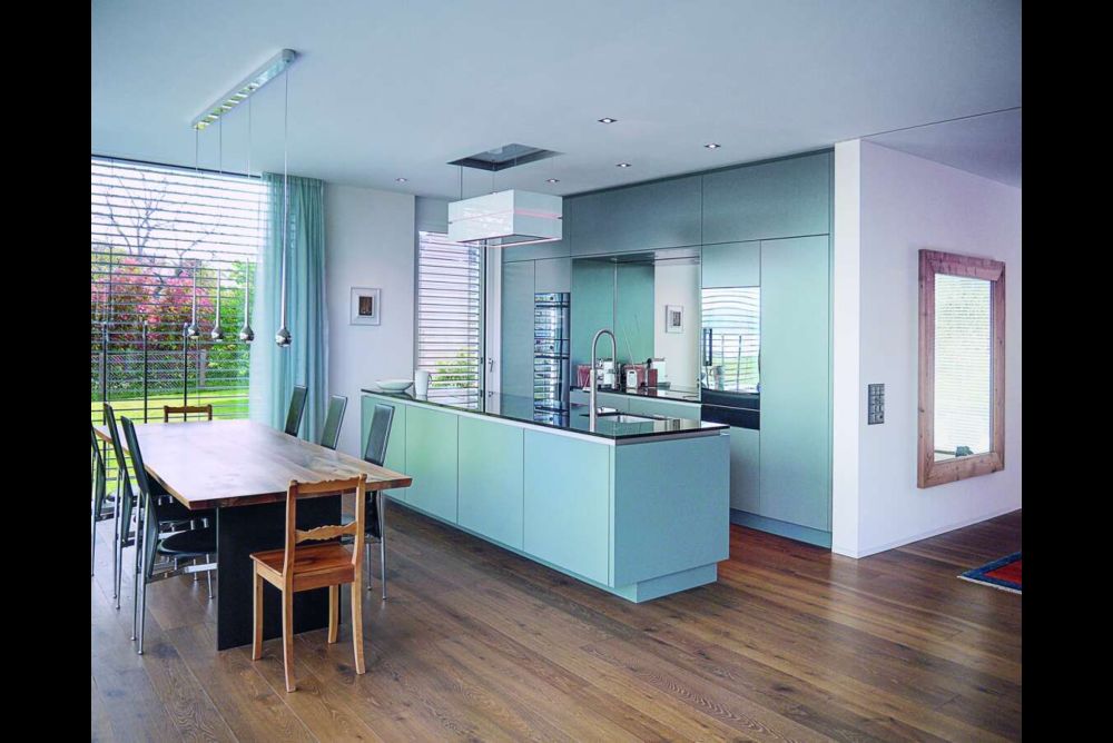 Klare Linien und grifflose Fronten zeichnen die Küche aus. Bild: Manuela Ziegler