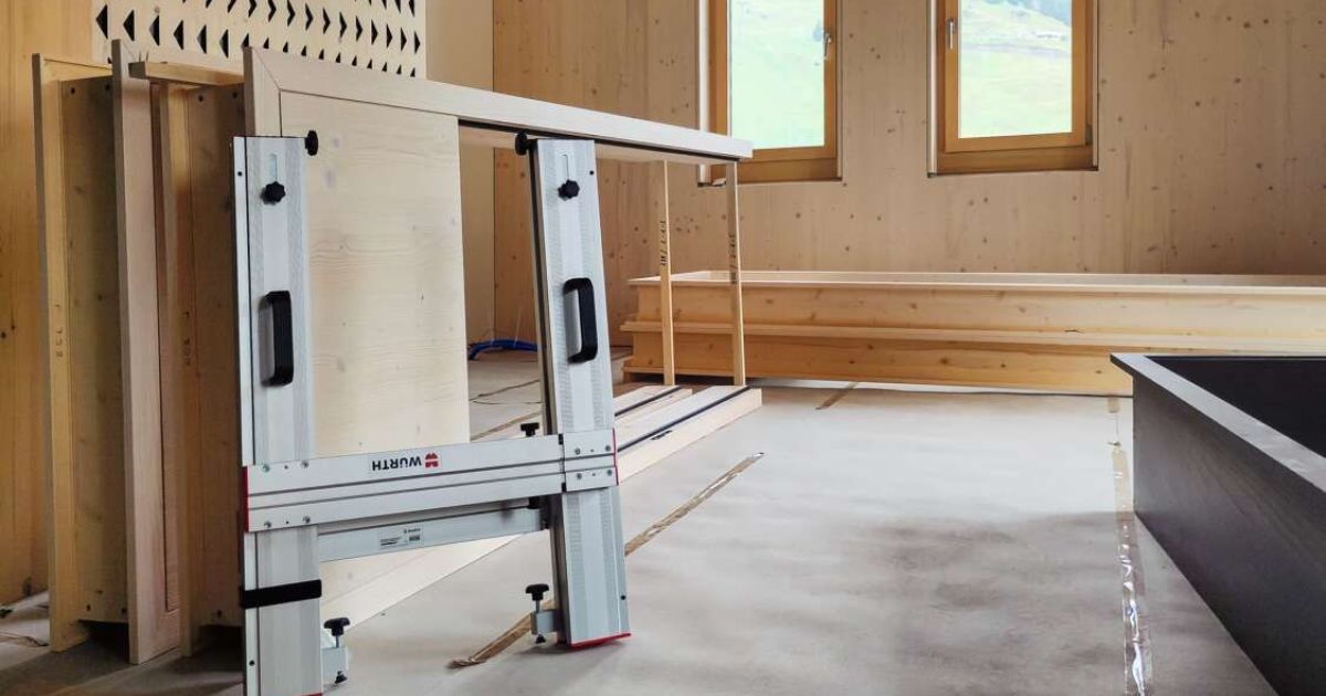Praxistest. In seiner jungen Schreinerkarriere hat Fachredaktor Sven Bürki auch das eine oder andere Türfutter montiert. Für diesen Praxistest hat er sich aber die Unterstützung von Fachleuten mit wesentlich mehr Erfahrung geholt. Rund einen Monat lang hat die Dorfschreinerei Andermatt GmbH das Montagewerkzeug «Zargenblitz» von Würth in der Praxis erprobt. Sven Bürki durfte den Test begleiten.