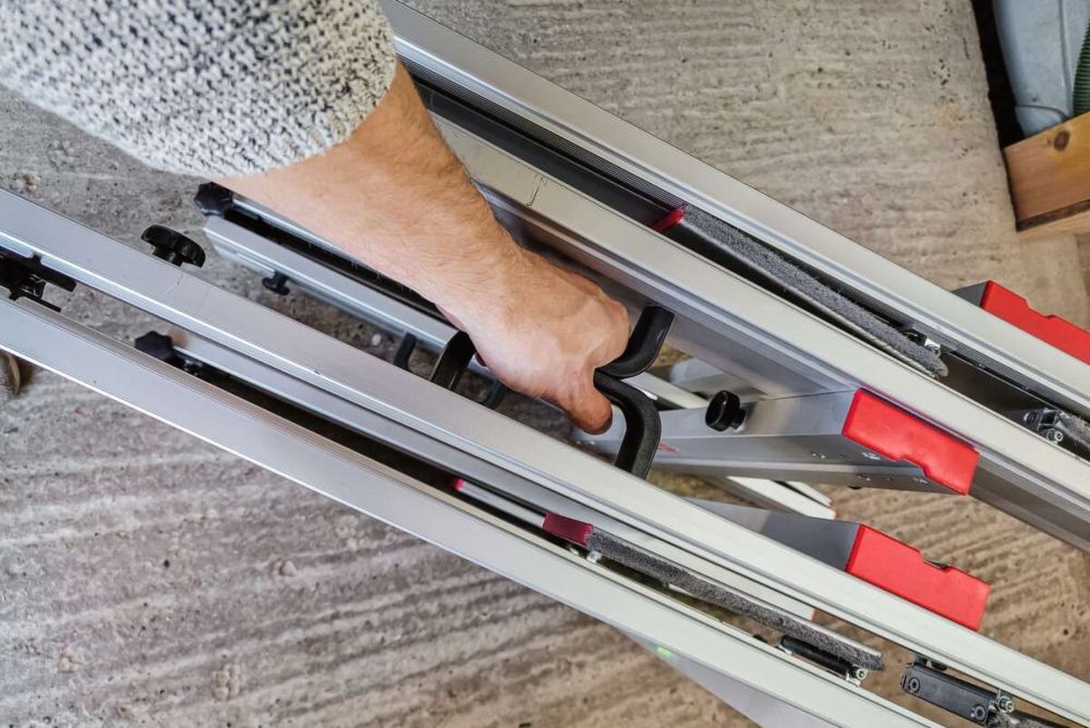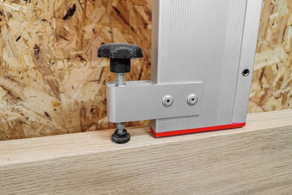 Apropos Handling: Dank der Griffe können problemlos zwei zusammengeklappte «Zargenblitze» mit einer Hand getragen werden. Hierfür sollten die beiden Klemmschrauben der Scharniere allerdings fest angezogen sein, da das Montagewerkzeug sonst zum Aufklappen neigt. Zudem ist der Platzbedarf bei mehreren Exemplaren nicht zu unterschätzen. Aus meiner Sicht kann es sich allerdings lohnen, dem «Zargenblitz» diesen Platz im Montagelager oder -fahrzeug einzuräumen.