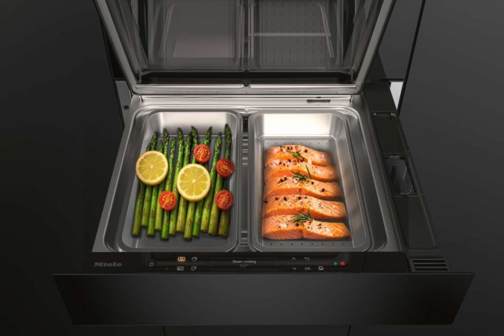 Die erste Dampfgarschublade von Miele mit nur 140 mm Höhe eröffnet zusätzliche Möglichkeiten beim Kochen mit maximaler Flexibilität in der Küchenplanung – vom urbanen Wohnumfeld bis zu offenen Küchenkonzepten. In Kombination mit einem 450 mm hohen Backofen mit Mikrowelle entsteht eine Drei-in-eins-Lösung für die 600-mm-Einbaunische, die Backen, Aufwärmen und Dampfgaren in einer Nische vereint – und dabei das parallele Kochen in zwei getrennten Garräumen ermöglicht. Damit reagiert Miele auf den wachsenden Bedarf an gesunden, vielseitigen Zubereitungsarten in der Küche. Ob Gemüse oder Kartoffeln, sous-vide-gegarte Gerichte oder Erwärmen kleiner Portionen – die Dampfgarschublade bietet Flexibilität für unterschiedlichste Anforderungen und ist ideal für Menüs für bis zu vier Personen.