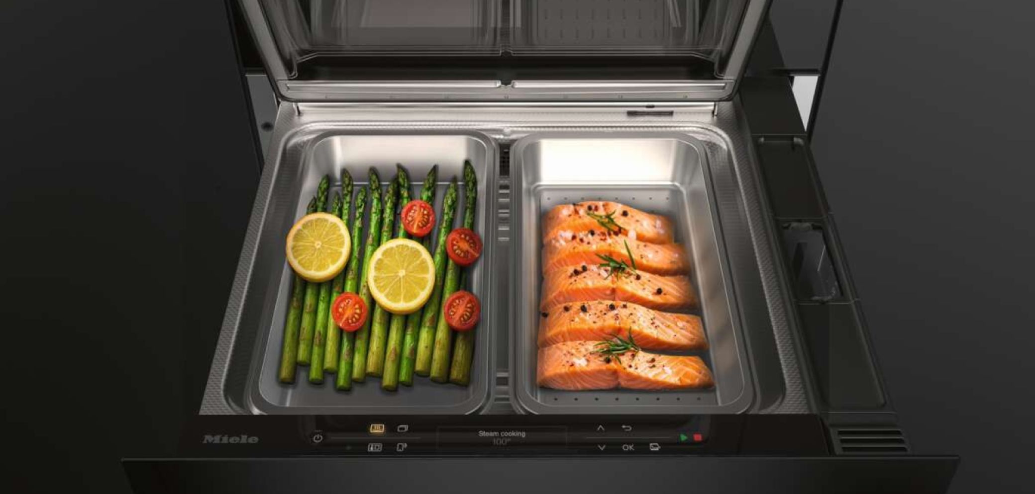 Die «DualSteam»-Technologie sorgt für kurze Aufheizzeiten und eine gleichmässige Hitzeverteilung. Mehr als 100 Automatik-Programme erleichtern laut Hersteller die Zubereitung gesunder Mahlzeiten, während Sous-vide-Garen auch anspruchs- volle Gerichte ermöglicht. Die schonende Zubereitung des Dampfgarens erhält Vitamine, Mineralstoffe, Aromen und den vollen Geschmack. Mit rund 14 l Garvolumen lassen sich bis zu drei kg Kartoffeln gleichzeitig garen. Die Schublade benötigt im Vergleich zu 450-mmDampfgarern bis zu 30 Prozent weniger Energie. Auch der Wasserverbrauch fällt geringer aus.