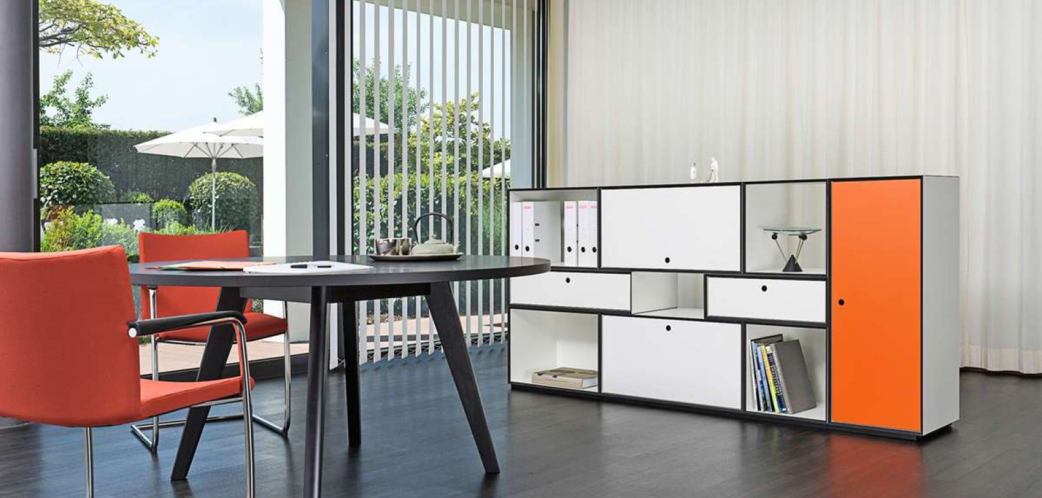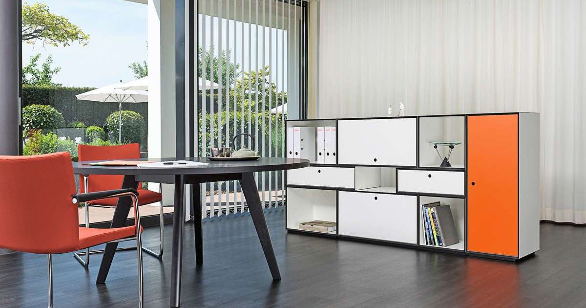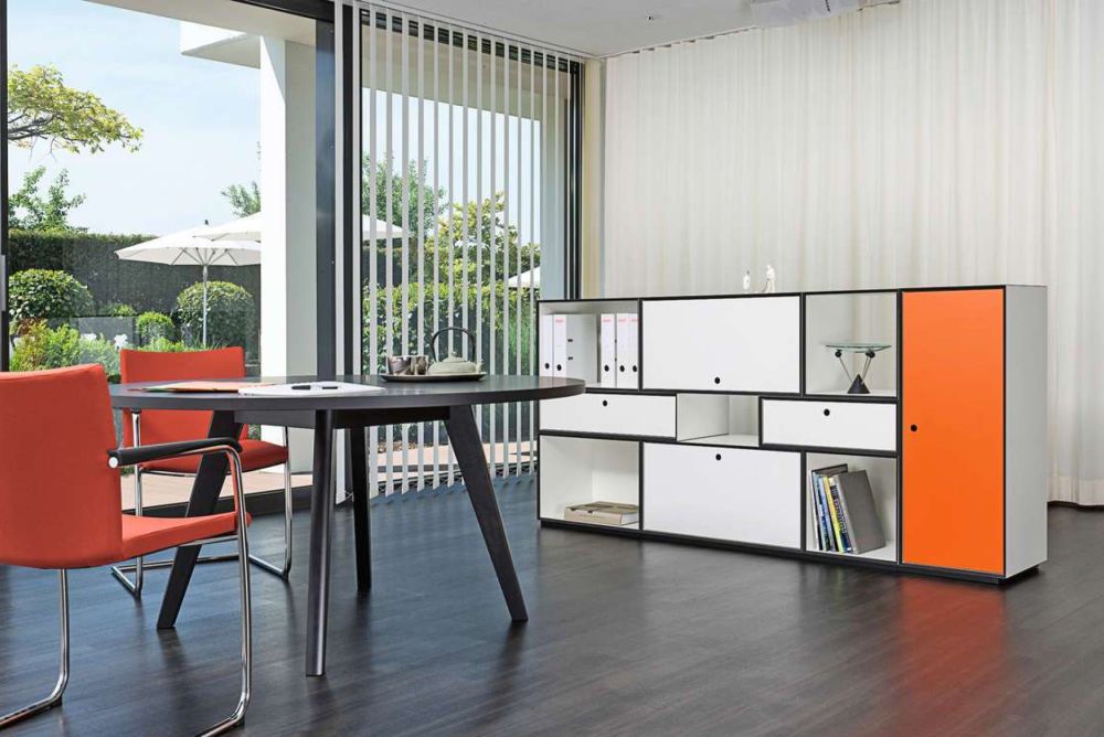 «Tamos M5» ist ein Möbelsystem von der Zurbuchen AG Amlikon, das sich ausnehmend gut für das Wohnzimmer, das Sitzungszimmer und den Arbeitsplatz eignet. Das Möbelprogramm wird aus CDF-Platten (Compact Density Fibreboard) hergestellt und ist als Sideboard, als frei hängendes Wandboard, als Caddy oder einfach als Raummodul einsetzbar. Durch flexible Umbaumöglichkeiten lässt es sich gut an die Bedürfnisse des Nutzers anpassen. Man kann es mit Einschwenk- und Ausschwenkklappen, Schubladen oder Hängerahmen ausrüsten. Eine Sockelplatte mit Nivelliergleiter überbrückt alle Bodenunebenheiten. Und dazu sind selbst eine Garderobe oder ein Prospektständer im gleichen Design erhältlich.