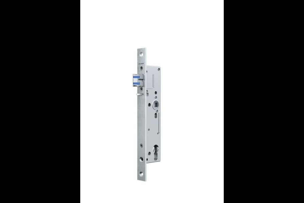 Die speziell entwickelten Gehäuse sind Basis dieser grossen Flexibilität. Um das System variabel nutzen zu können, wurden die Schlosskästen so ähnlich wie möglich konstruiert: Die drei Varianten – mechanisch, mit Überwachungsfunktion oder drückergesteuert – weisen identische Aussenmasse auf. Alle sind als Einfach- und Mehrfachverriegelung für ein- und zweiflügelige Rohrrahmen-Türen verfügbar. Die Selbstverriegelungsfunktion wird mit einem Fallenriegel realisiert, der nach dem Schliessen der Tür noch einmal 20 mm herausgeschoben wird und so den Riegel ersetzt. Jedes Schloss ist für Tür Din links und Tür Din rechts verwendbar. Wie bei Vollblatt-Versionen üblich, ist auch bei den Rohrrahmen-Panikschlössern eine Verschraubung durch das Schloss vorgesehen. Der durchgängige Drehwinkel der Drückernuss von 35° bei allen Elementen vereinfacht den Wechsel der Verriegelungen, egal ob mit Türdrücker, mit Panikgriff- oder mit Panikdruckstange.