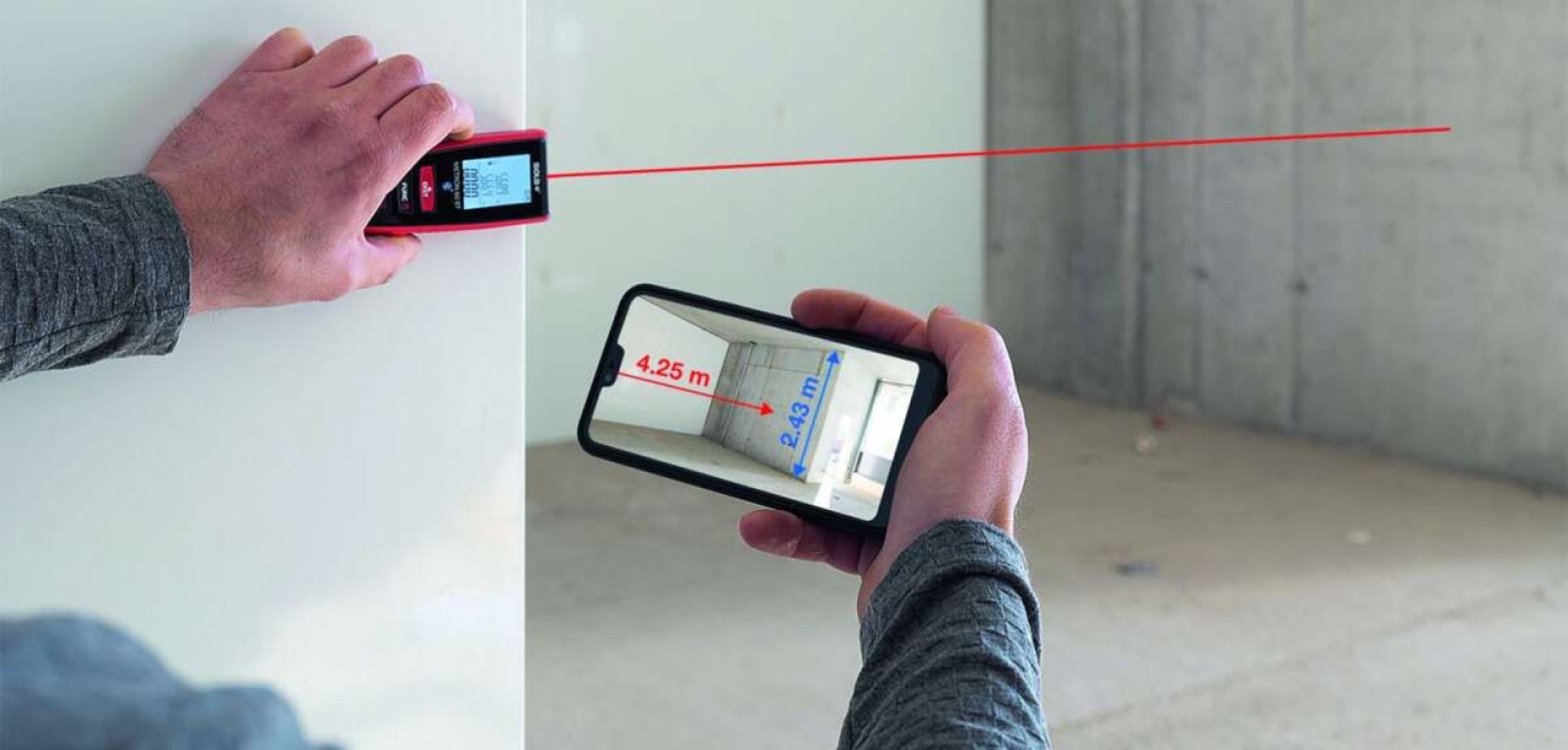Der neue Laser-Entfernungsmesser «Metron 60 BT» von Sola misst Entfernungen bis zu 60 m bei einer Genauigkeit von ± 1,5 mm im Bereich von 0,05 bis 10 m. Bei Distanzen zwischen 10 und 60 m kann sich die maxi- male Toleranz um 0,1 mm/m verschlechtern. Das Gerät umfasst neun Messfunktionen samt Messwertspeicher und eignet sich für vielseitige Anwendungen im Innen- und Aussenbereich. Mit der integrierten Bluetooth-Schnittstelle lassen sich Messwerte direkt und kabellos über die App «Sola Measures» auf das Smartphone übertragen. Mit dieser kostenlosen App können Messungen vor Ort dokumentiert oder Messdaten schnell geteilt werden. Auch Fotos oder Baupläne lassen sich direkt bemassen sowie Messergebnisse speichern und verwalten. Die App ist für Android-Geräte und iPhones geeignet.Das Display gewährt mit seiner Hintergrundbeleuchtung eine gute Ablesbarkeit, und dank des ¼-Zoll-Gewindes an der Rückseite lässt sich das Gerät auf einem Stativ befestigen, um Messpunkte exakt anpeilen zu können. Ein Endstück am Gehäuse kann im Winkel von 90° ausgeklappt werden und dient als Anschlaghilfe bei Messungen ab Aussenkanten. Der Li-Ion-Akku mit 3,7 V und 850 mAh ermöglicht eine lange Betriebsdauer und kann via USB-Kabel aufgeladen werden.