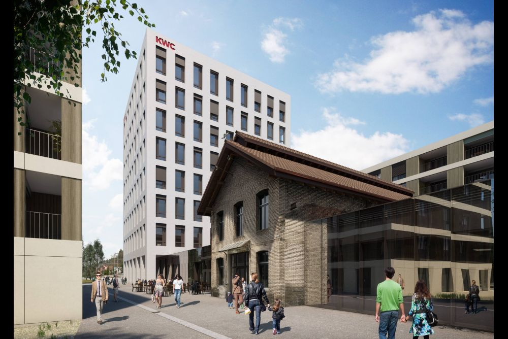 Die alte Giesserei bleibt erhalten, sie musste vom bisherigen Standort an die neue Position verschoben werden. Bild: KWC