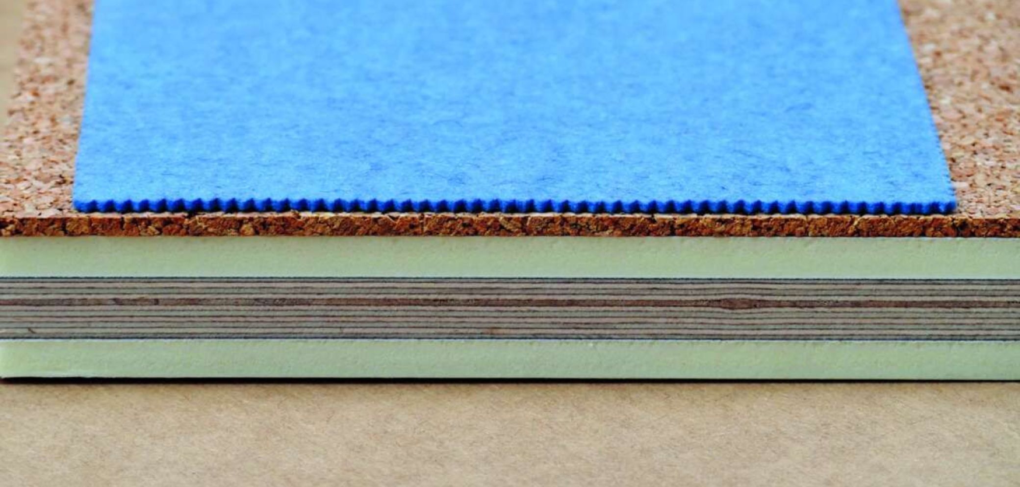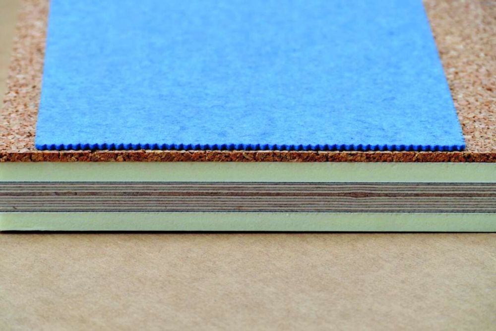 Ein Beispiel im Akustikbereich: Multiplex zwischen zwei Lagen Kunst-stoff, einseitig belegt mit Kork und Filz. Bild: Christian Härtel