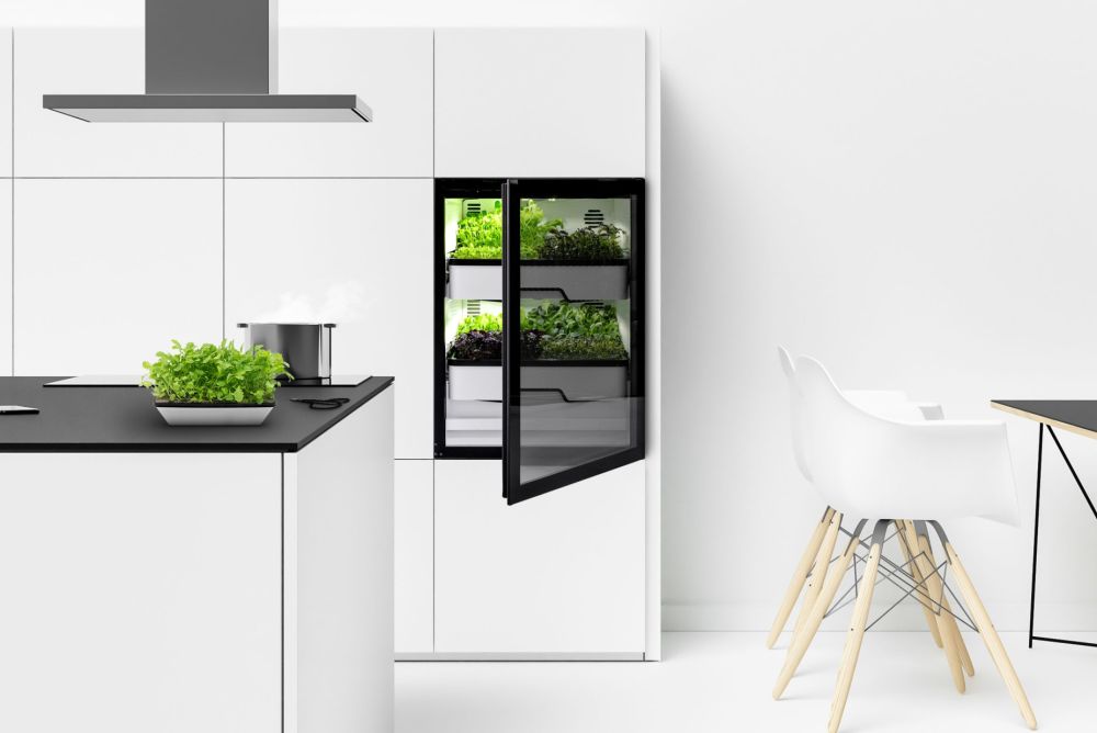 Unabhängig von der Sonneneinstrahlung können Pflanzen unter speziellem Licht auch in geschlossenen Räumen gedeihen. Kommen weitere kontrollierte Bedingungen für Substrat, Wasserversorgung und Temperatur hinzu, wachsen Pflanzen dann sogar rascher als in der Natur. Zusammen mit der LED-Technik ist so der Gewächsschrank möglich. Vereinzelte Entwürfe solcher in die Küche integrierter «Gewächshäuser» gab es immer wieder in den letzten Jahren. Zum ersten Mal hat nun mit Miele ein gestandener Küchengerätehersteller durch die Übernahme des Startups Agrilution einen solchen Gewächsschrank in sein Produktportfolio aufgenommen.