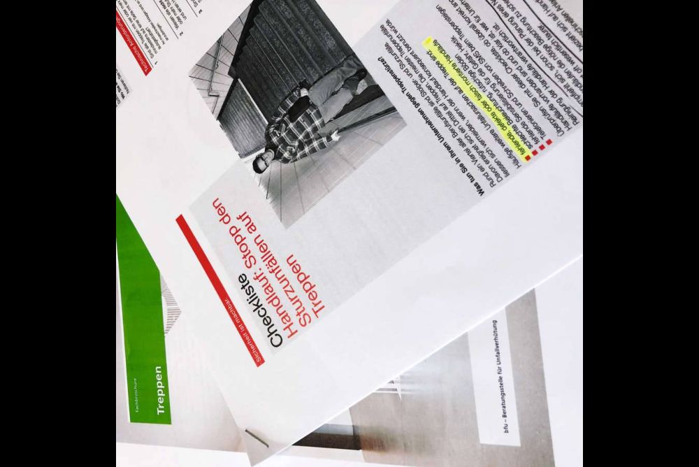 Die Suva hat mit der Checkliste «Handlauf: Stopp den Sturzunfällen auf Treppen» ein Arbeitspapier zur Überprüfung der vorhandenen Handlaufsituation erarbeitet. Damit kann im Um- oder Neubau genau festgestellt werden, ob der Handlauf alle nötigen Anforderungen erfüllt oder ob eine Überarbeitung nötig ist.