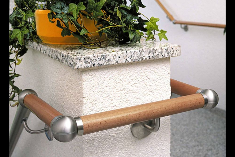 Das Kugel-Handlauf-System von Haefele ist ein wahres Multitalent. Es können Handläufe aus Holz, Holz/Edelstahl, Edelstahl und Holz mit Edelstahlelementen ausgeführt werden. Die Handläufe aus Holz sind mit einer Kerneinlage aus Aluminium versehen, die zur Stabilität und Befestigung der Kugelgelenke und verschiedenen Abschlüssen dient. Die Kugelgelenke ermöglichen eine stufenlose An- passung der Handläufe von 90 bis 270 Grad in alle Richtungen. Durch die individuellen Möglichkeiten und die einfachen Einstellungsmöglichkeiten lassen sich mit dem System auch komplizierte Wandformen einfach mit einem Handlauf versehen.