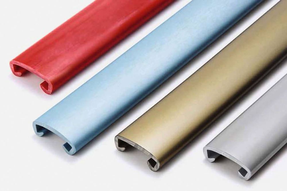 Die Handlaufprofile von Rehau werden auf vormontierte Trägereisen durch kurzzeitiges Erhitzen formschlüssig befestigt. Die Profile bestehen aus einem hochwertigen Kunststoff und sind als Flach- und Rundhandlauf erhältlich. Zur individuellen Anpassung stehen die Handläufe in Uni- und Metallicfarben oder mit Struktur- und Holzdekoren zur Auswahl. Stösse und Abschlüsse werden mit einem Kunststoff-Schweisskolben verschweisst.